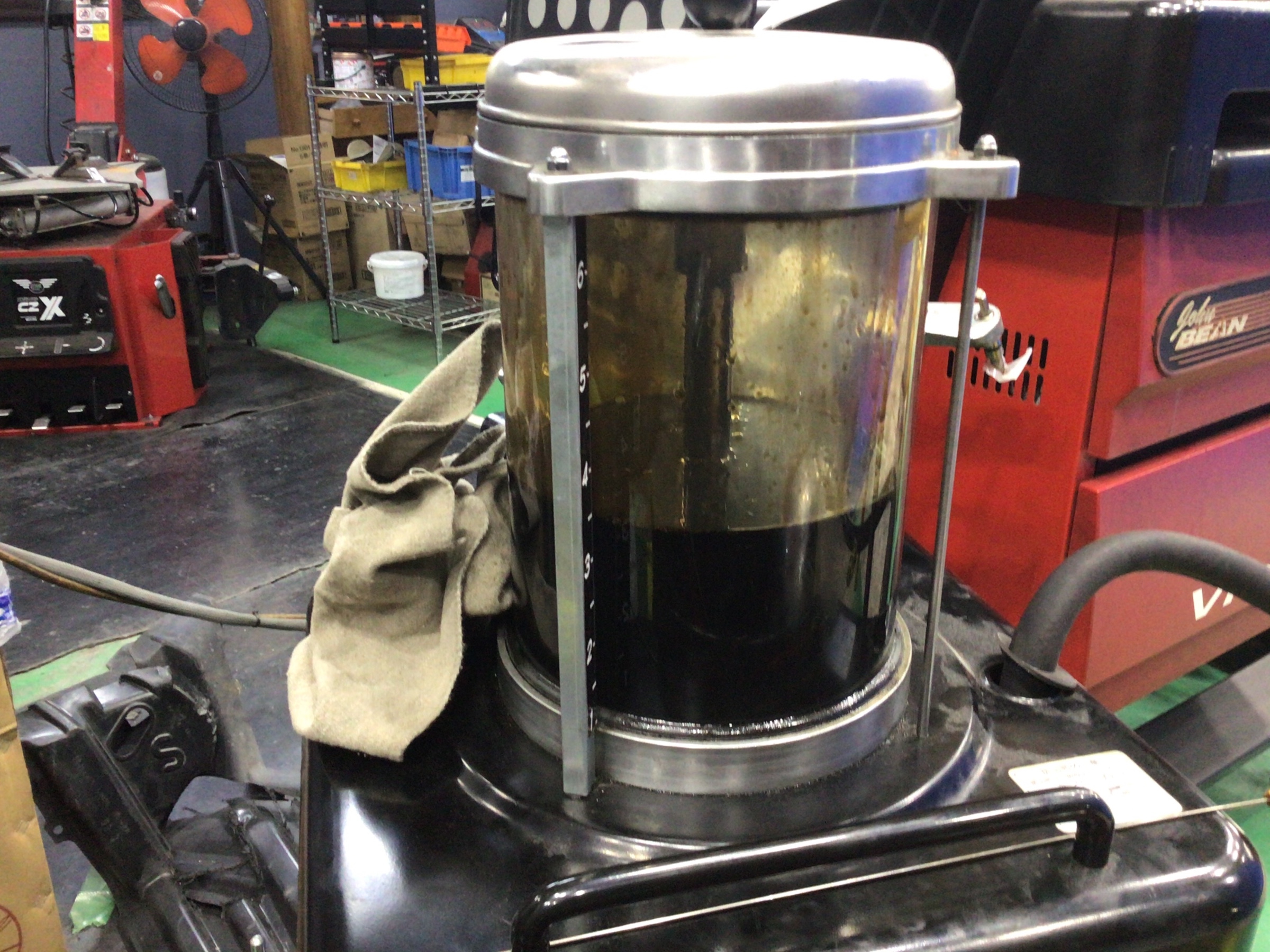 抜けたオイルはこのタンクに溜まっていき、縦軸のところで何リットル抜けたか