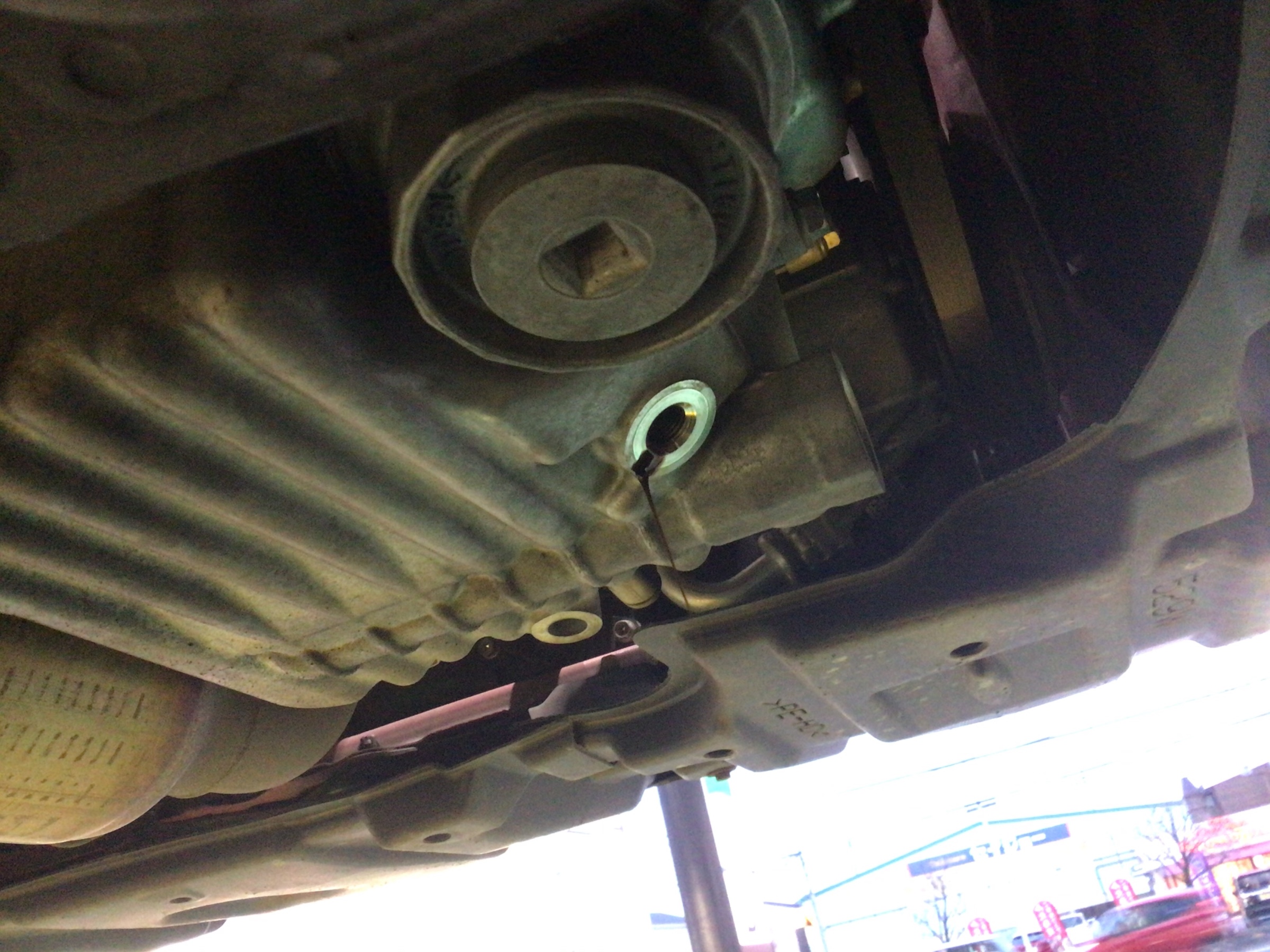 ドレンボルト(オイルパンの栓)を緩ませると、汚れたオイルが排出されていきます