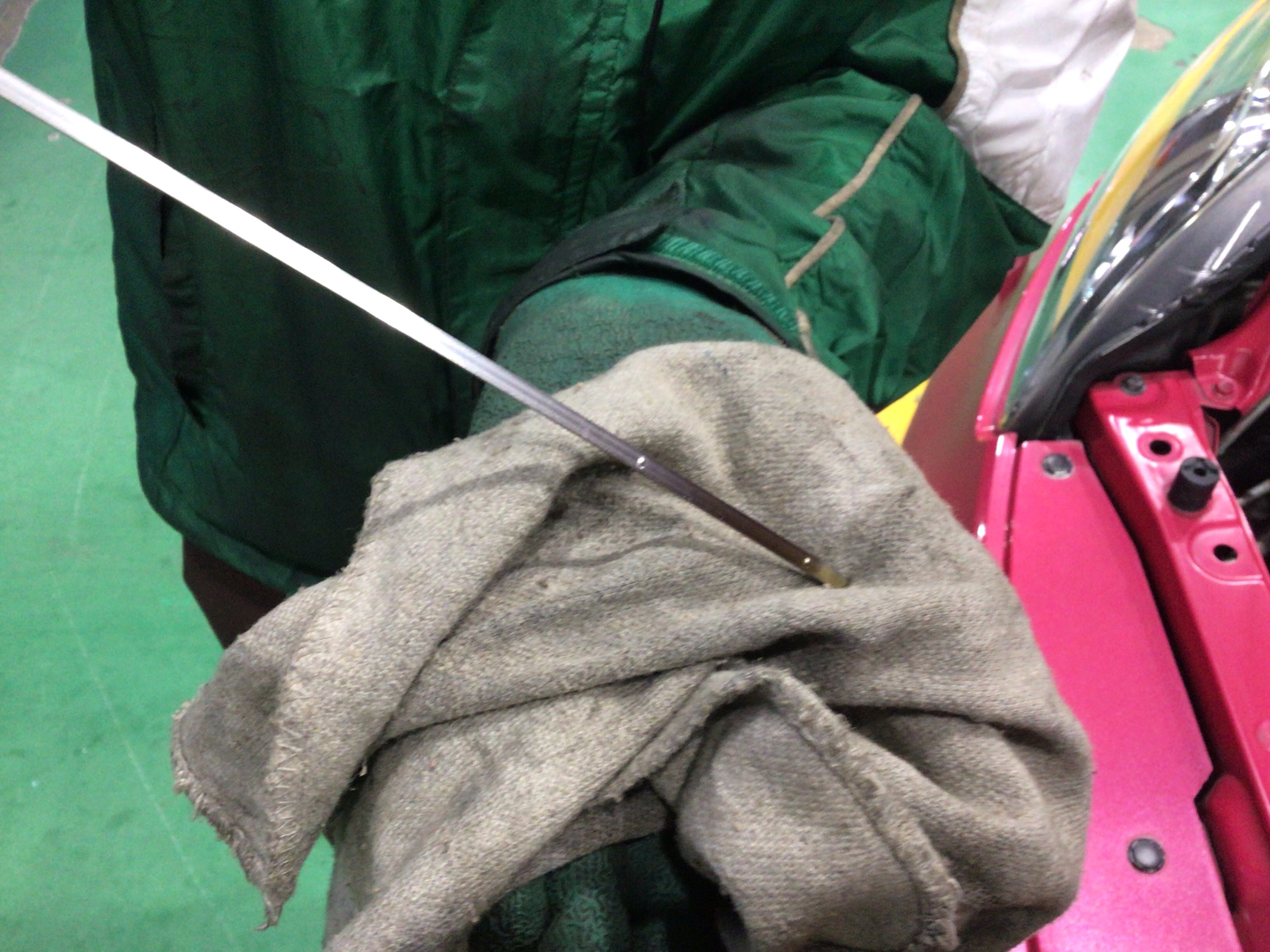 最後にレベルゲージで油量をはかって作業は終了です!