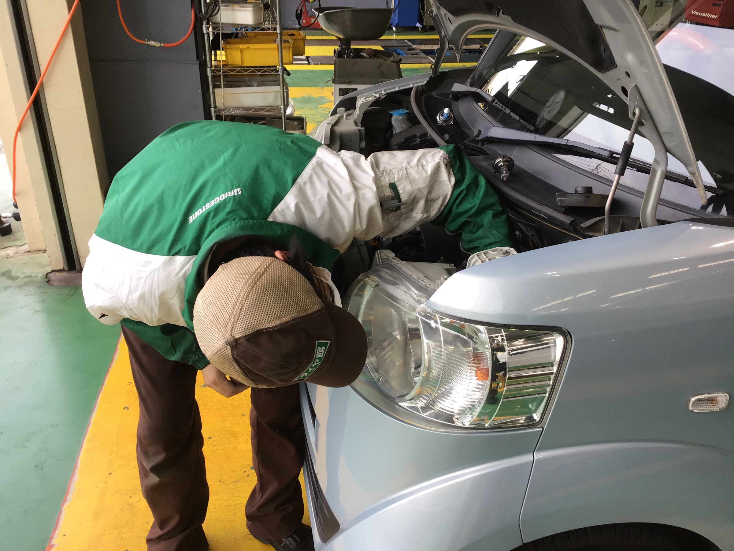 ボンネットを開けて交換作業に入ります!