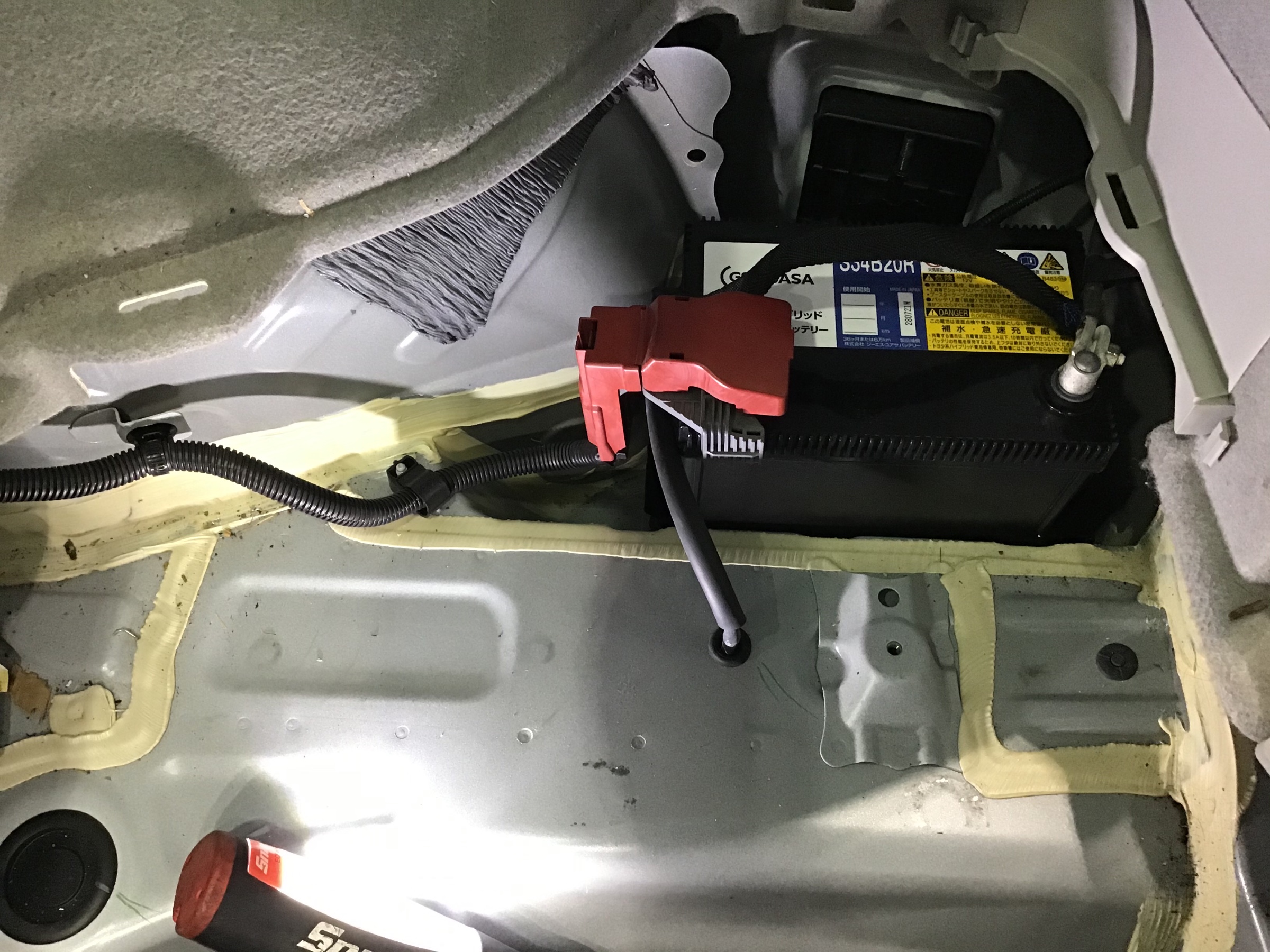 通常バッテリーはボンネットの中にありますが、プリウスは違います!!