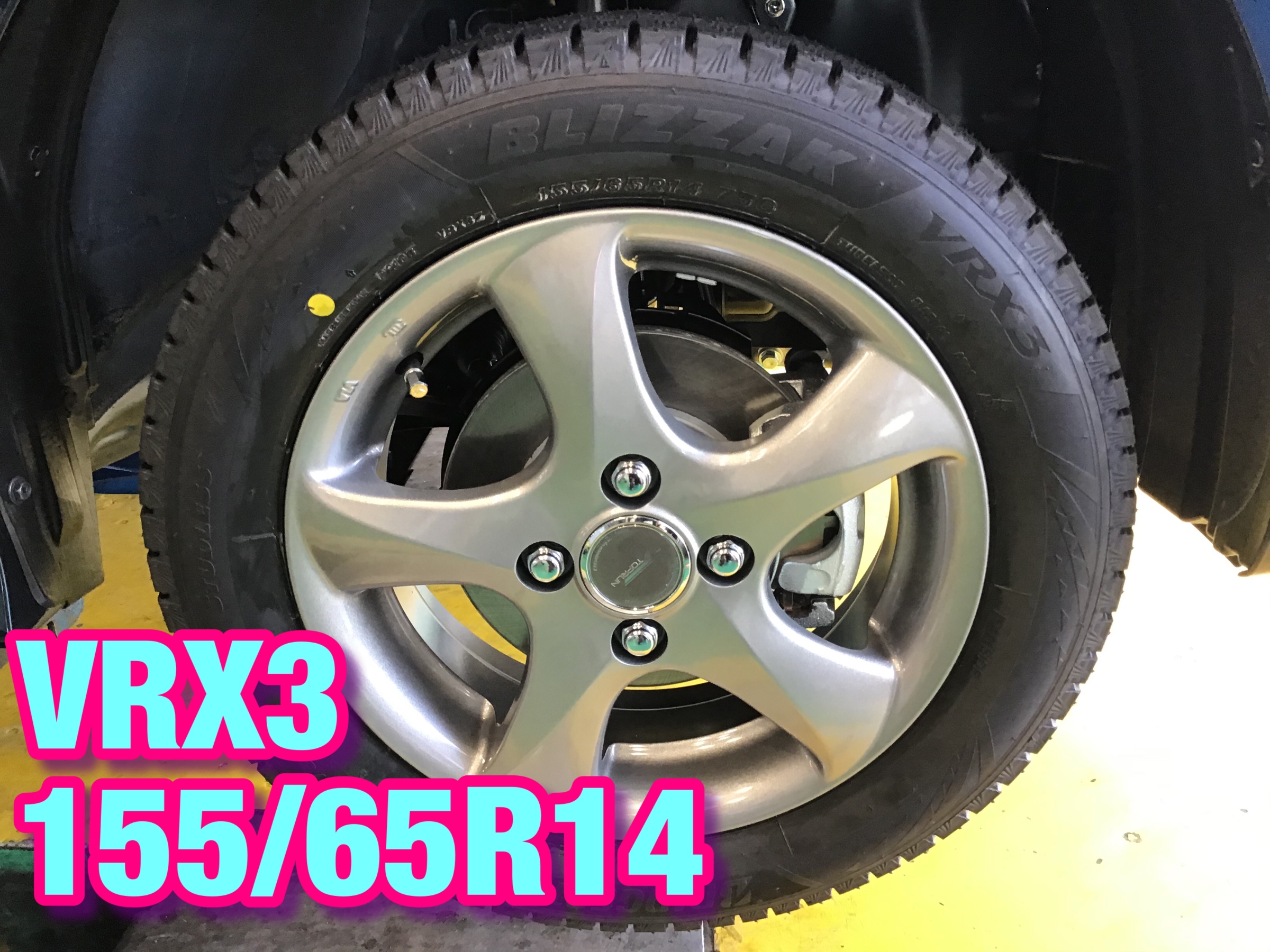 今シーズン一番人気のVRX3でタイヤサイズは155/65R14でご用意させていただきました。