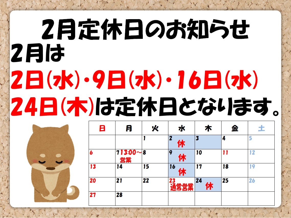 2月定休日のお知らせ ポスト 2022年1月28日 こんにちは。 タイヤ館川口店です。 いつも当店のホームページをご覧いただきありがとうございます。 2月定休日のお知らせです。 2月は2日(水)・9日(水)・16日(水)・24日(木)が 定休日となります。 また2月7日(月)は社員研修のため、13:00からの営業となります。 ご迷惑をお掛けいたしますが、何卒ご理解いただきます様お願い致します。 担当:吾妻