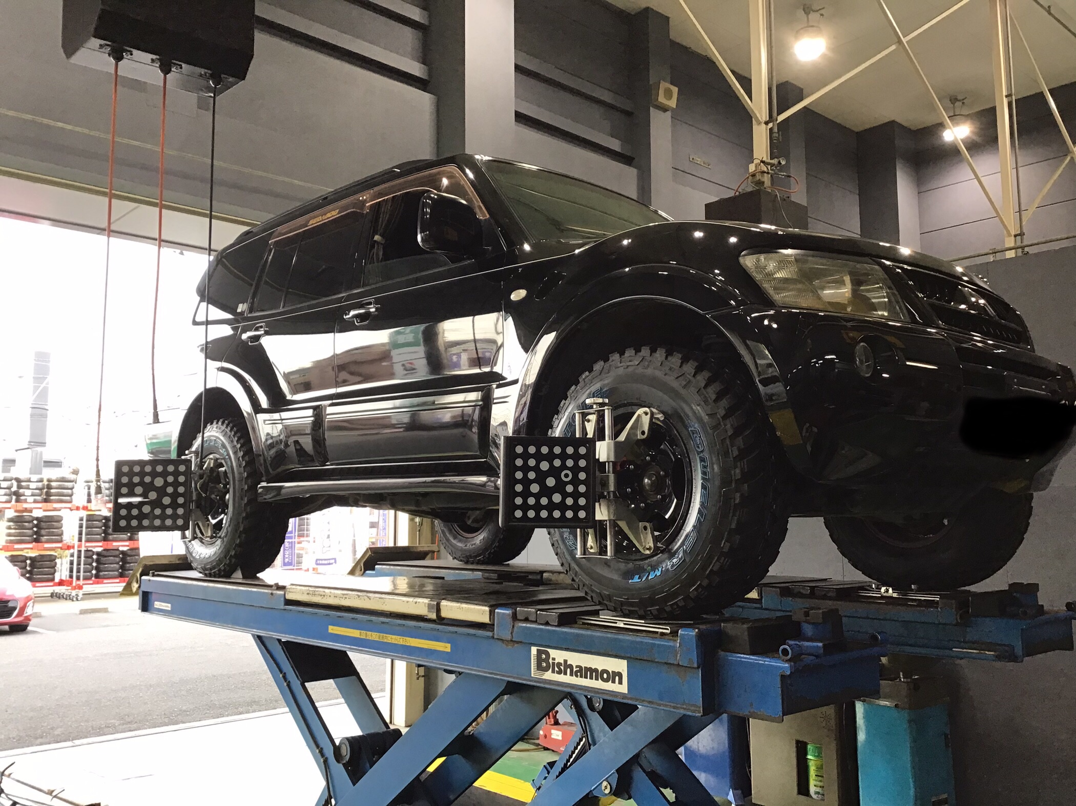 三菱 パジェロ タイヤ交換アライメント作業!