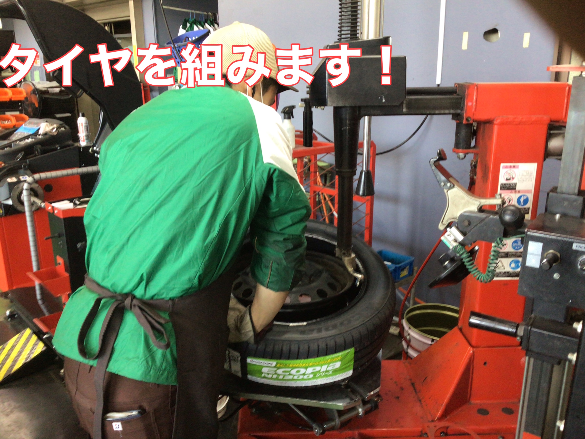 古いタイヤを外して、新しいタイヤを組み込みます!