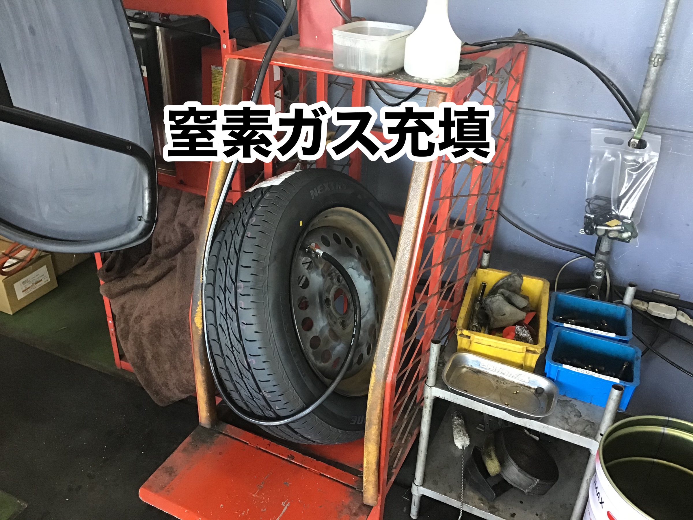 タイヤを組み込んだら窒素ガスを充填!