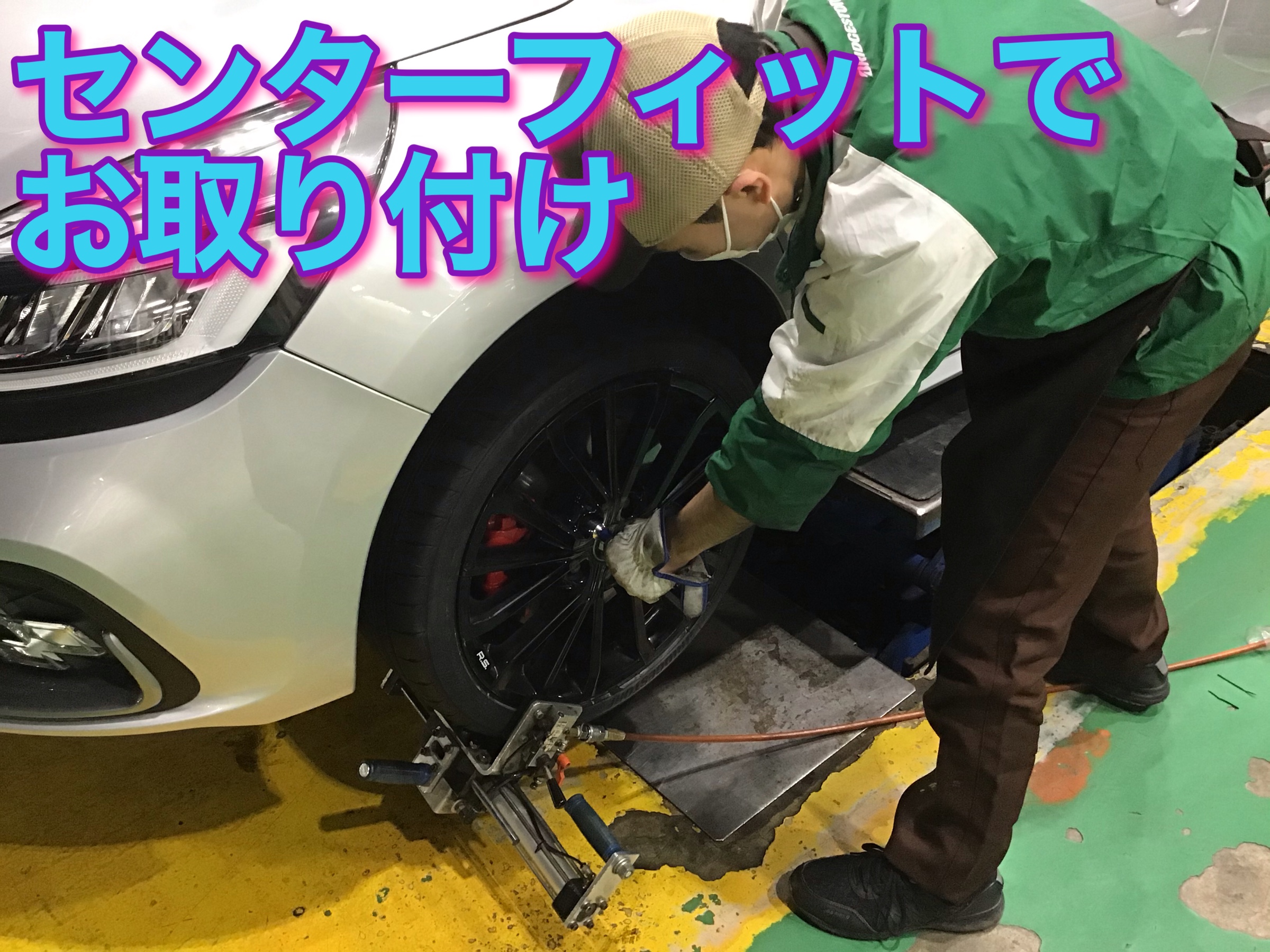 センターフィットでタイヤを取り付けていきます。
