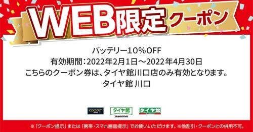 こちらのクーポン券は、タイヤ館川口のみ有効となります。