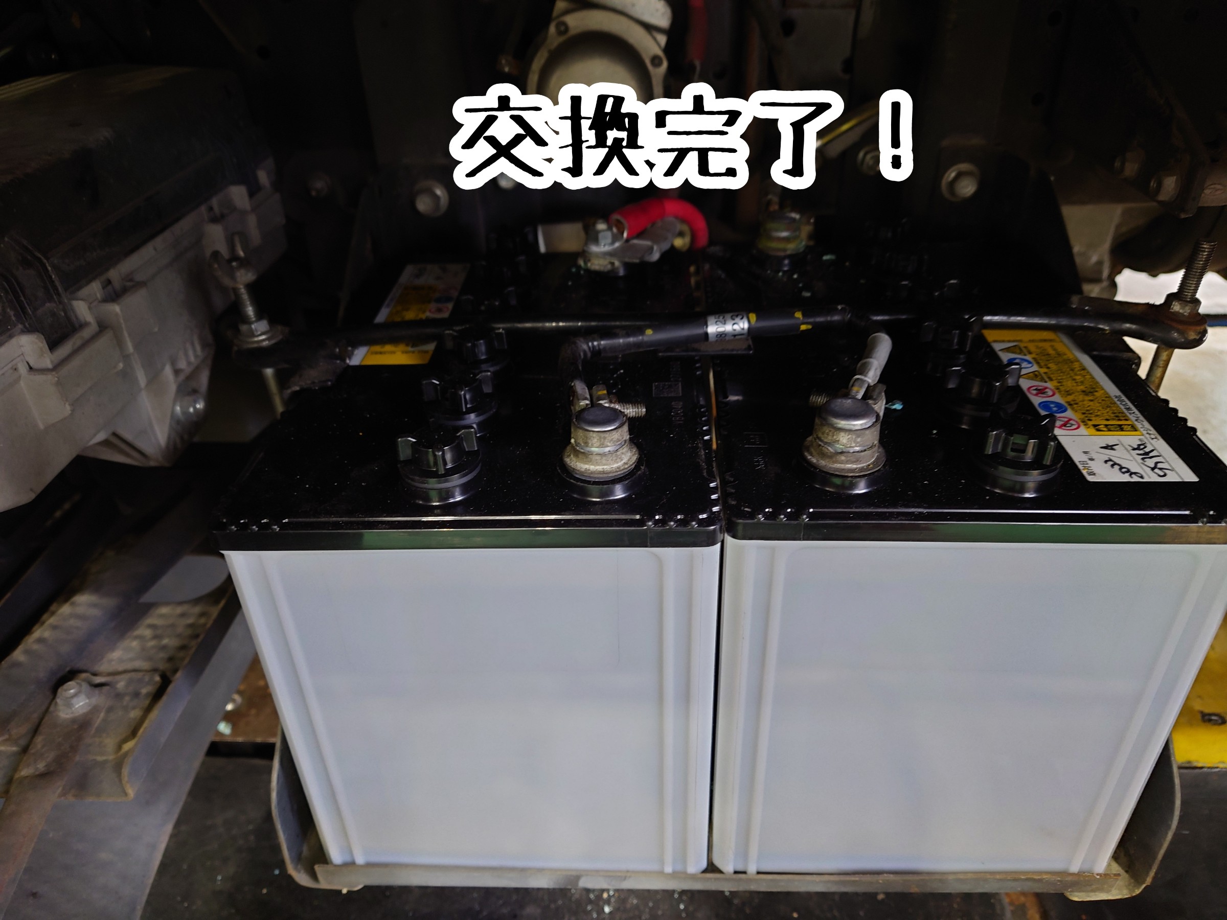 キャンピングカーの、バッテリー交換作業です。
