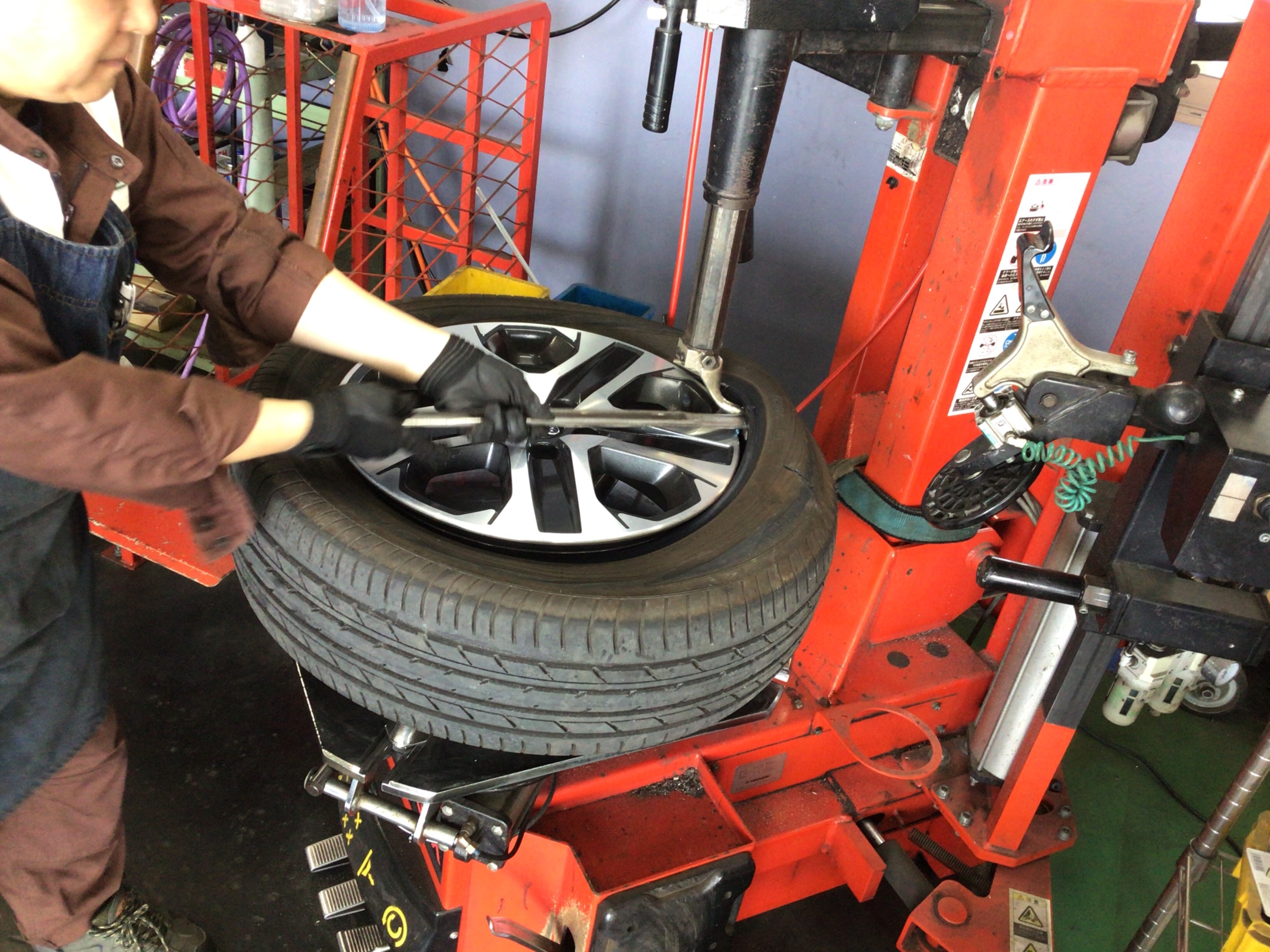 古いタイヤを外して、新しいタイヤを組み込みます!