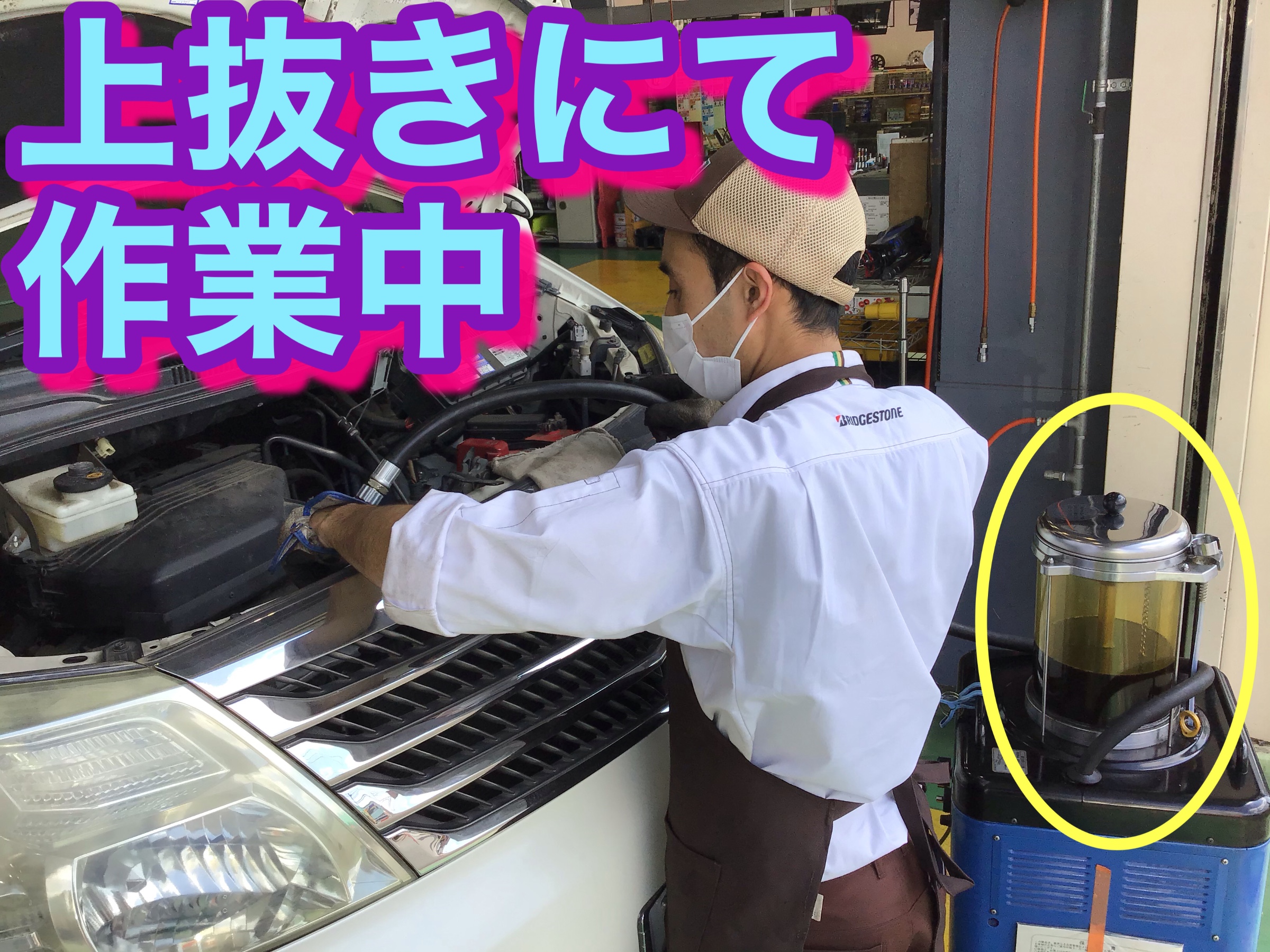 本日は上から古いオイルを抜く上抜きにて作業をしています。