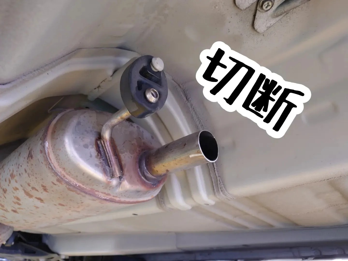 このマフラーを付ける為には、純正マフラーを「切断」