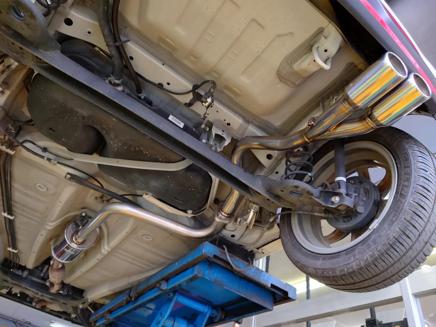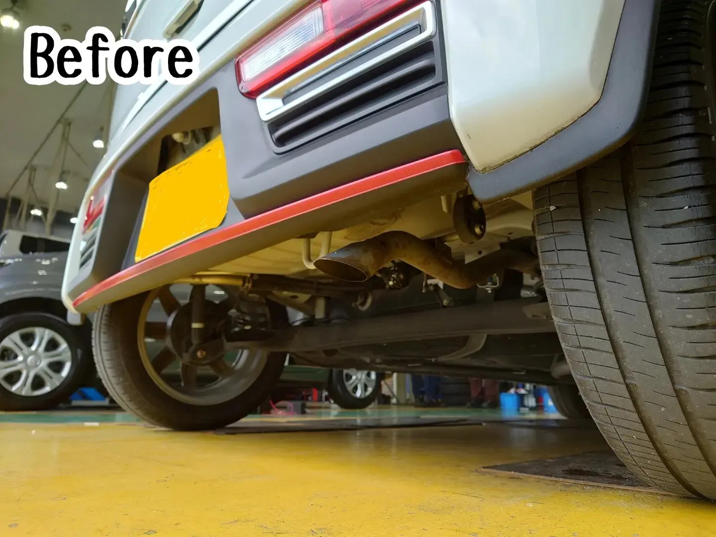 スズキ アルト ターボRSの、マフラー交換作業です!