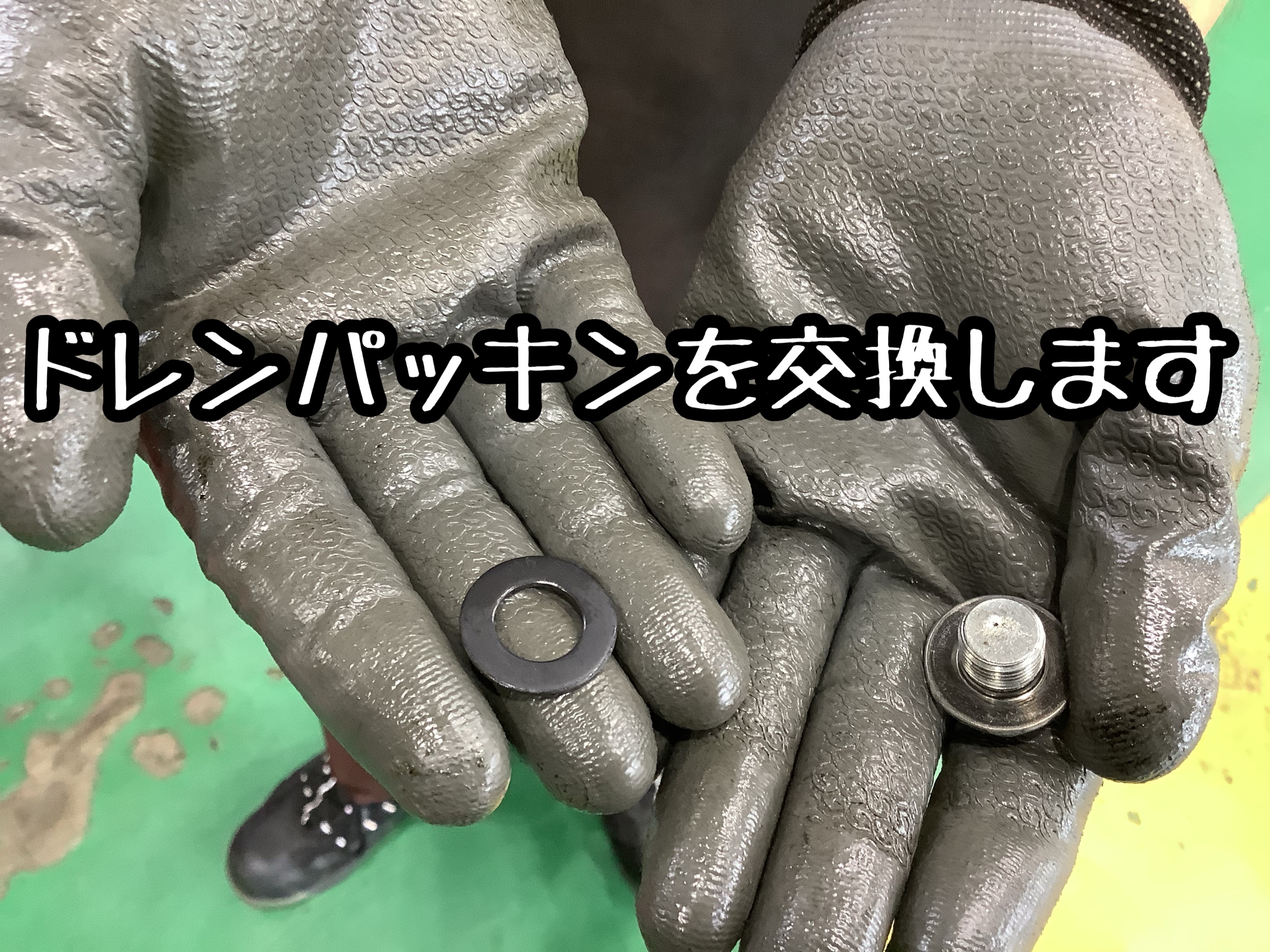 オイルが抜けるのを待つ間に、ドレンボルトのドレンパッキンを新しいのと交換!