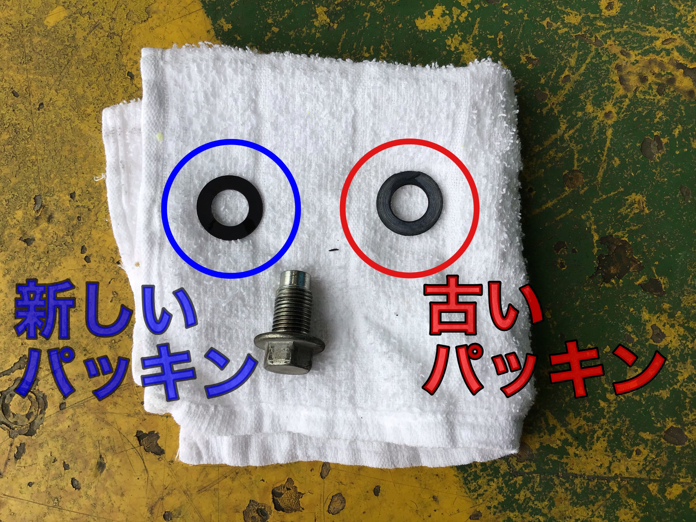 オイルが抜けるのを待つ間に、ドレンボルトのドレンパッキンを新しいのと交換!