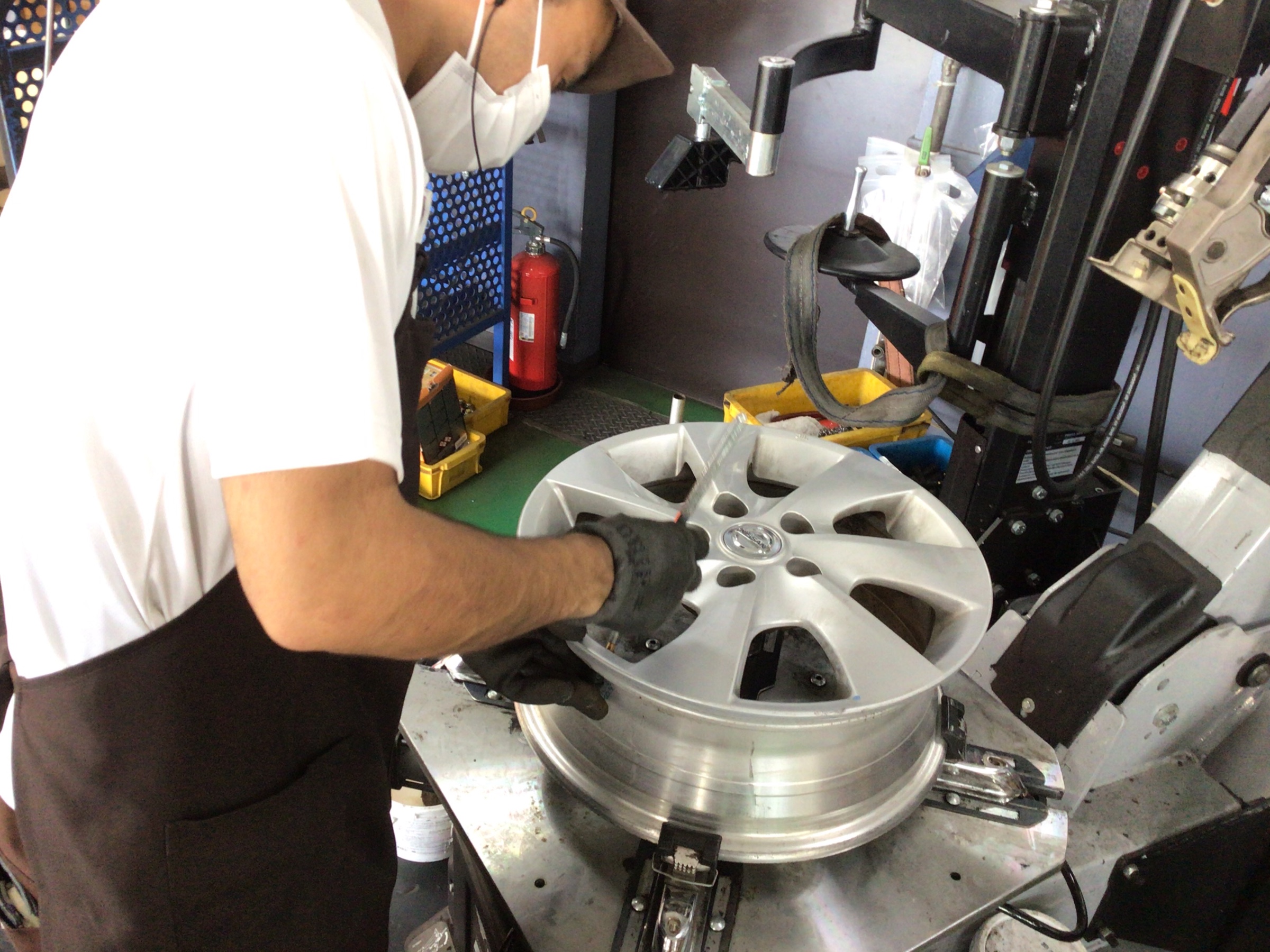 古いタイヤを外して、新しいタイヤを組み込みます!