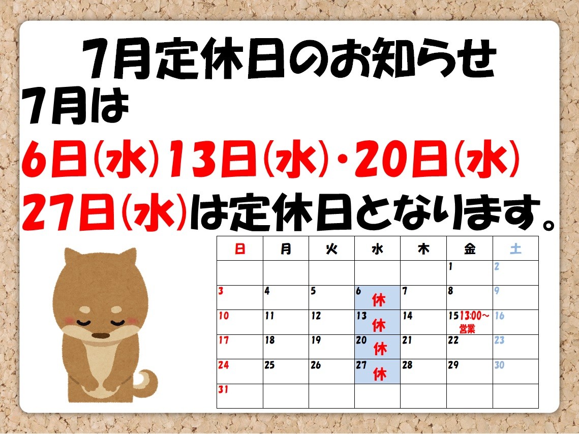 7月は6日(水)・13日(水)・20日(木)・27日(水)が