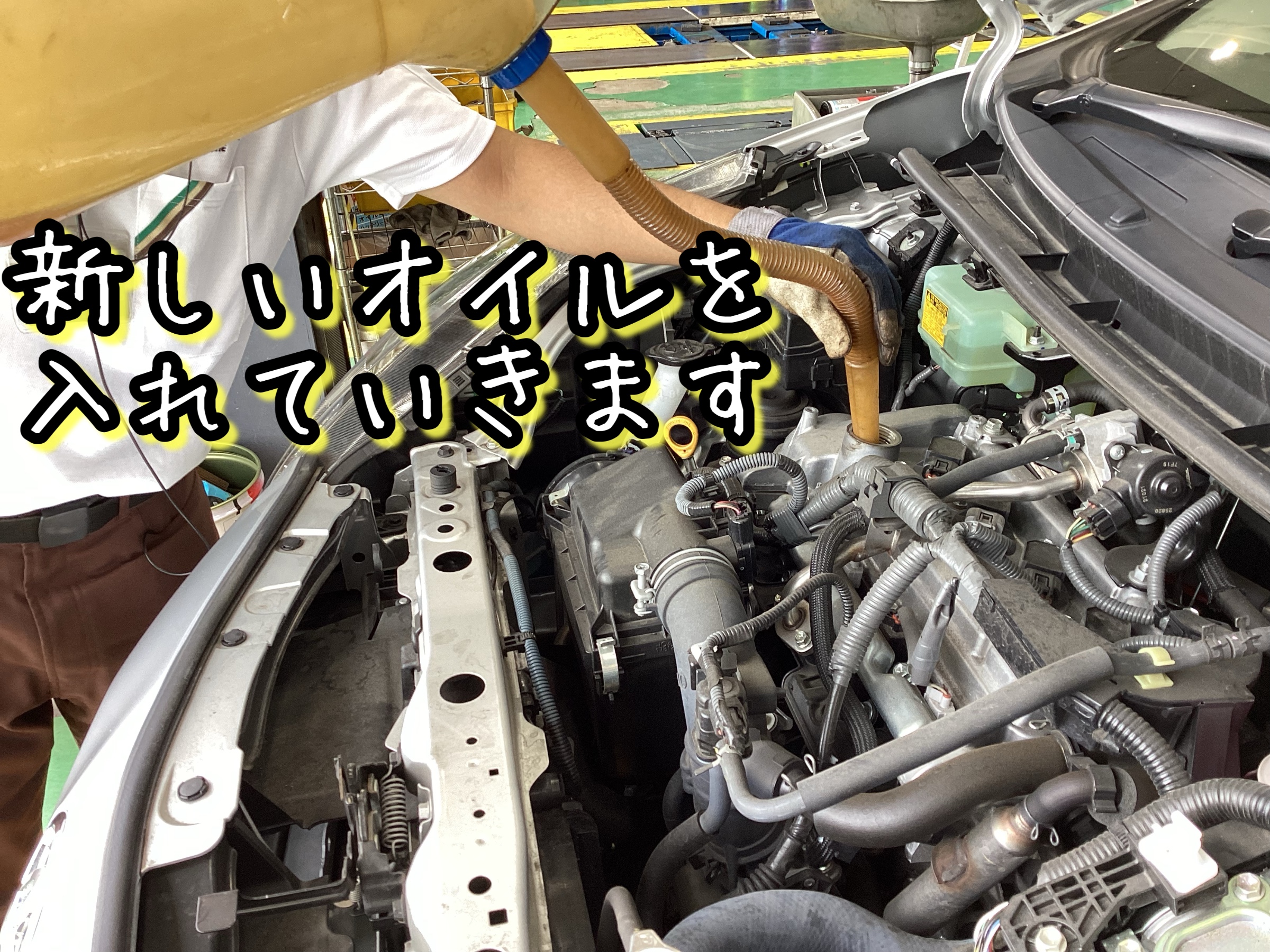 新しいエンジンオイルを規定量入れていきます。
