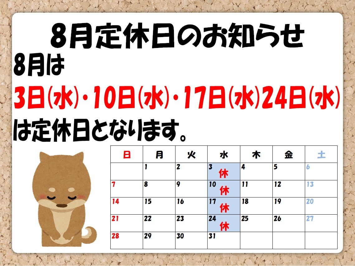 8月は3日(水)・10日(水)・17日(木)・24日(水)が