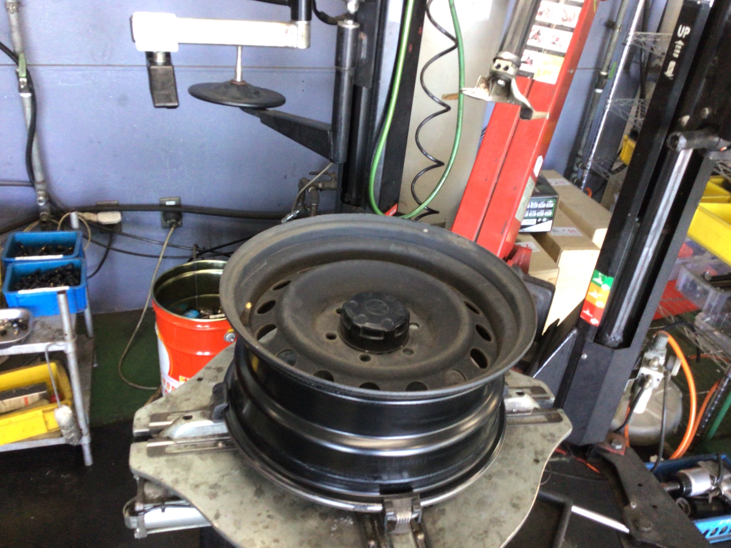 古いタイヤを外して、新しいタイヤを組み込みます!