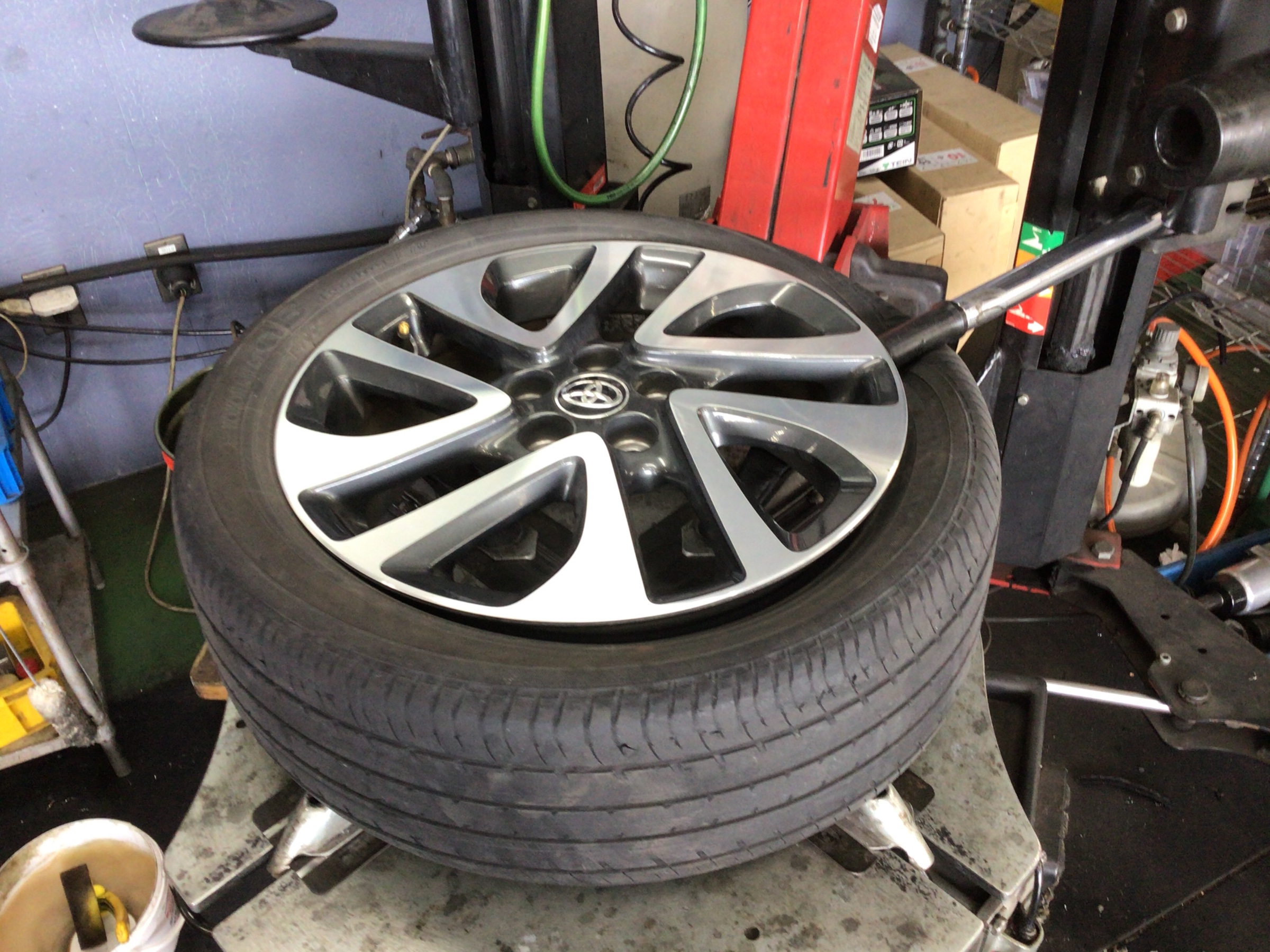 古いタイヤを外して、新しいタイヤを組み込みます!