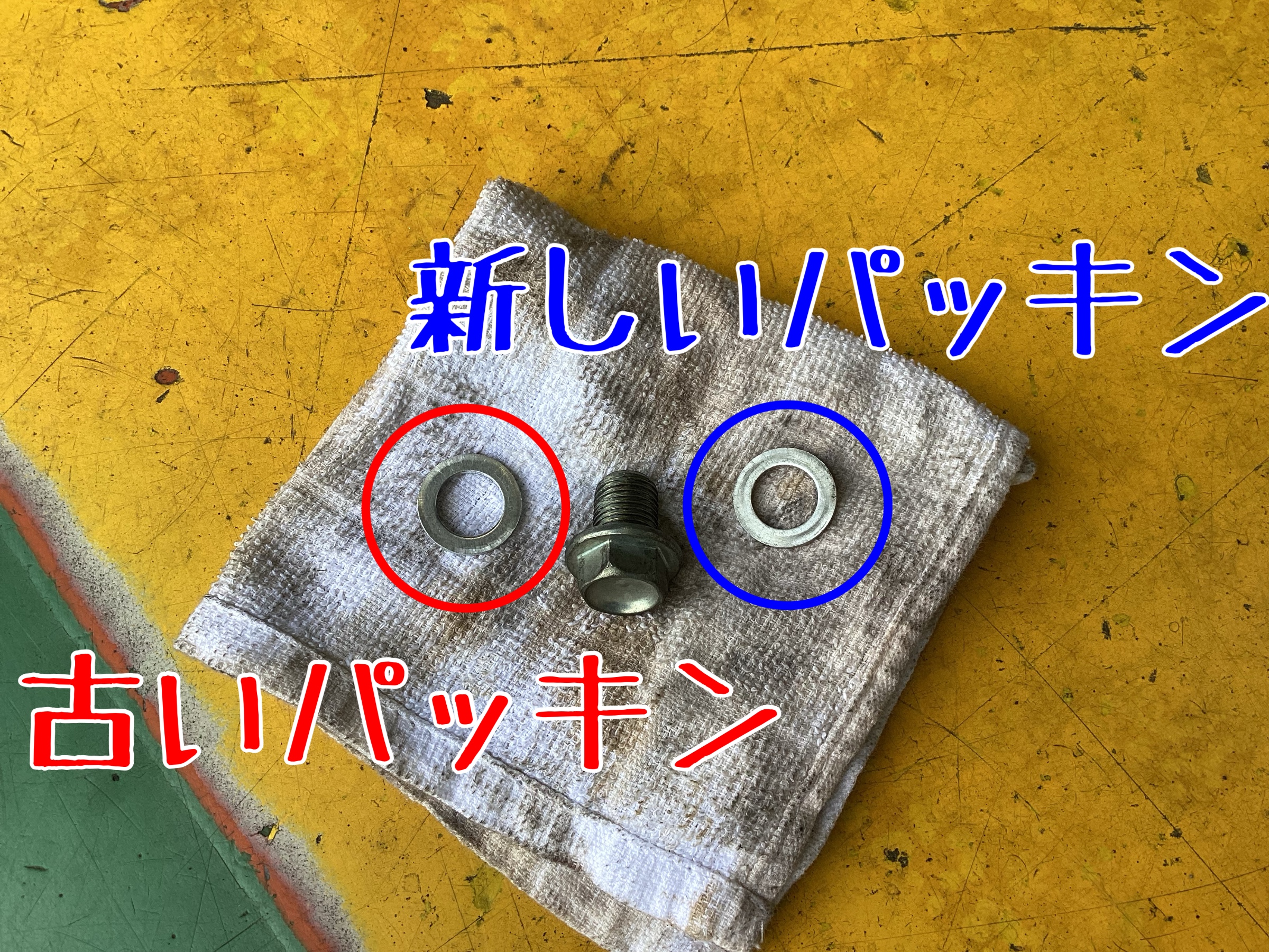 オイルが抜けるのを待つ間に、ドレンボルトのドレンパッキンを新しいのと交換!