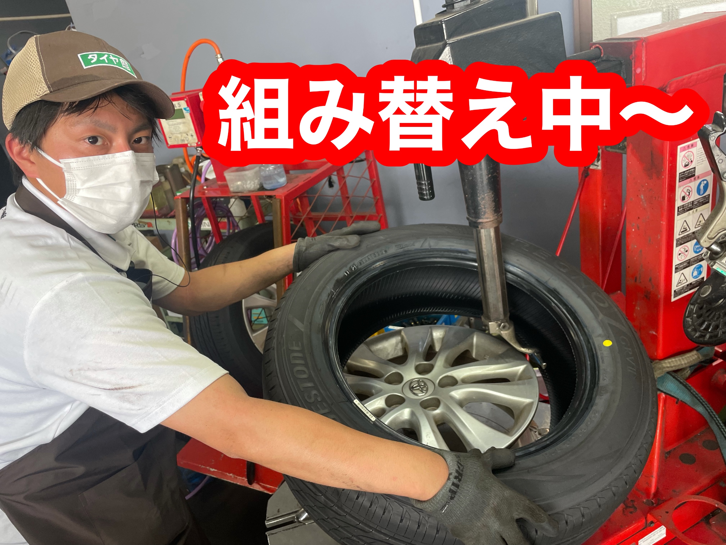古いタイヤを外して、新しいタイヤを組み込みます!