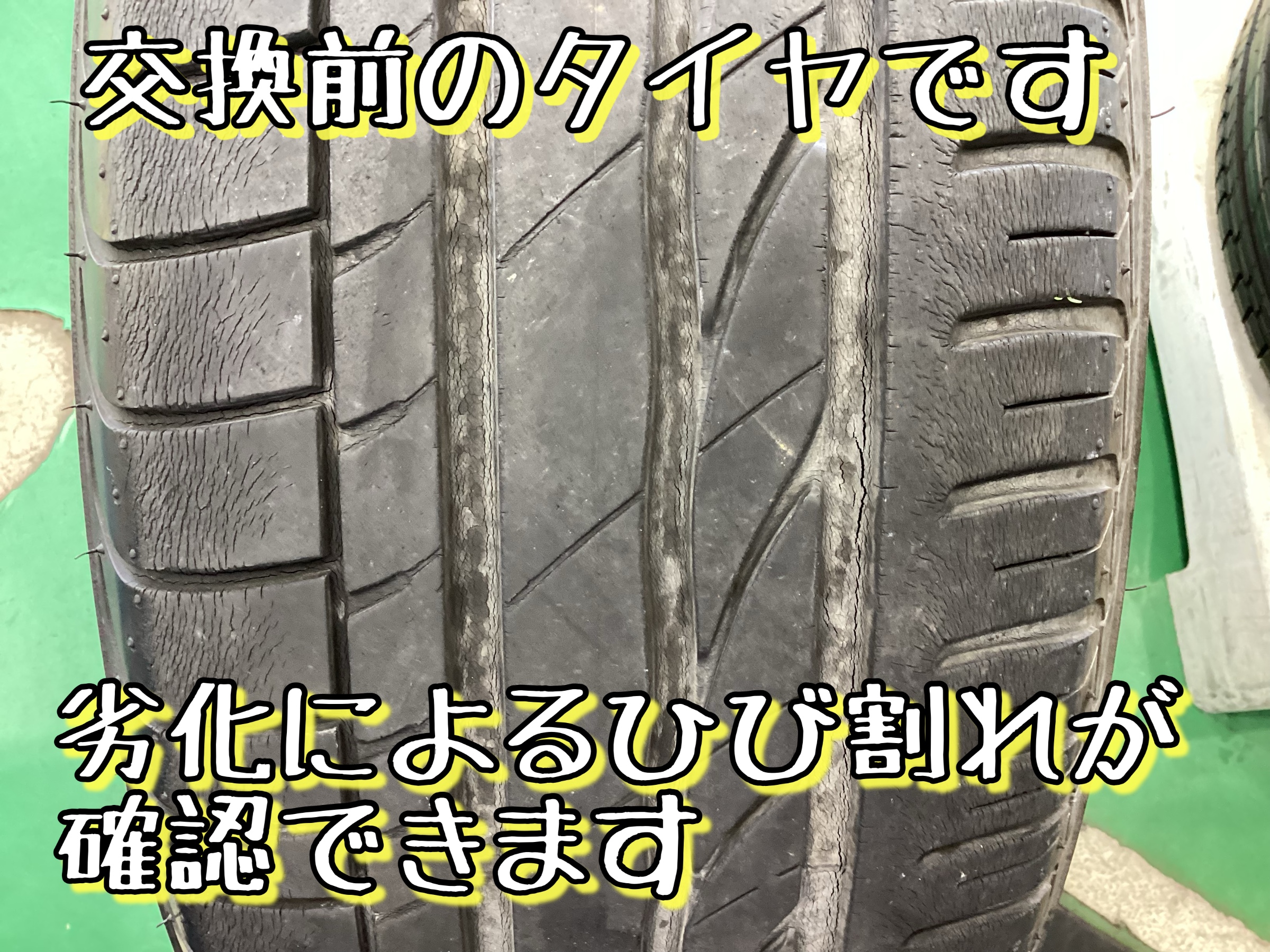 交換前のタイヤは写真のようにひび割れが確認できます。