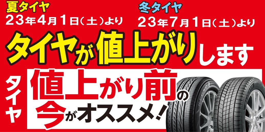 タイヤ交換をご検討中の方、値上がり前の今がおススメです!