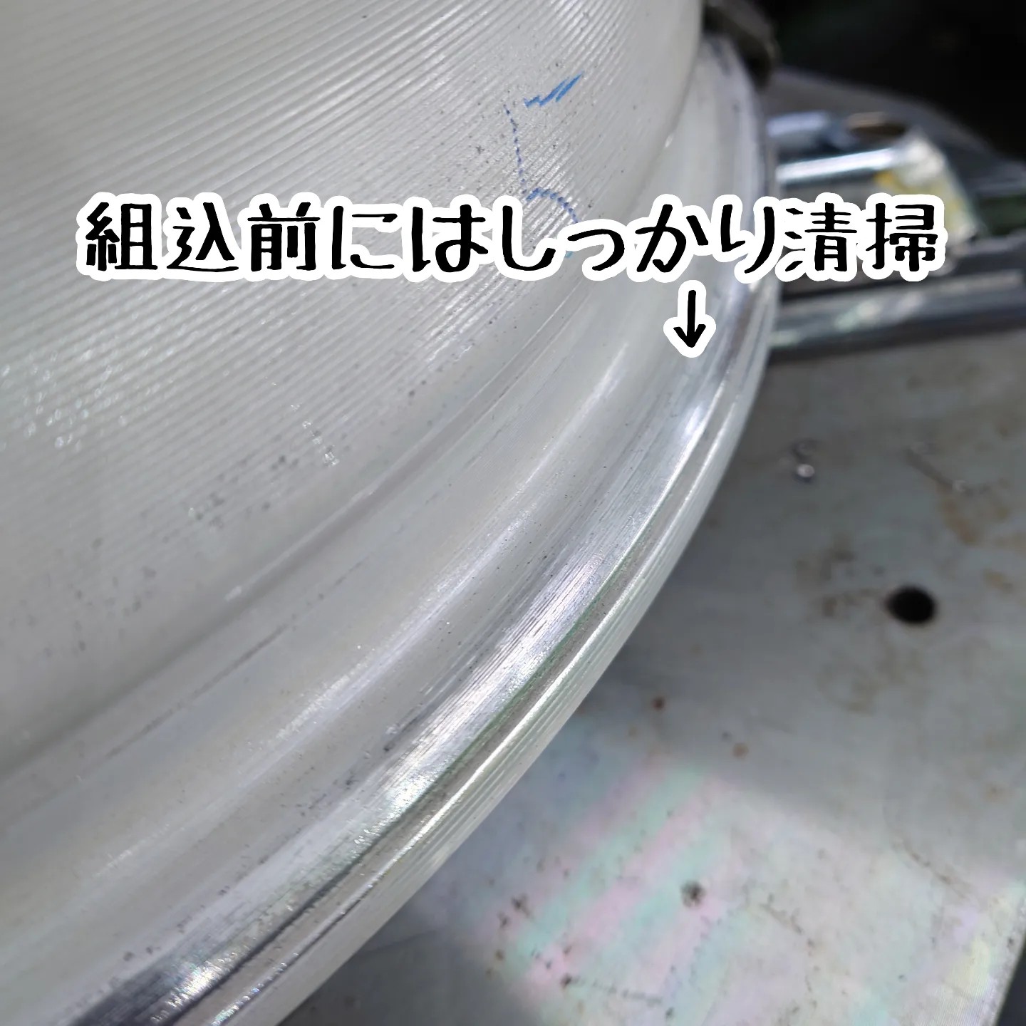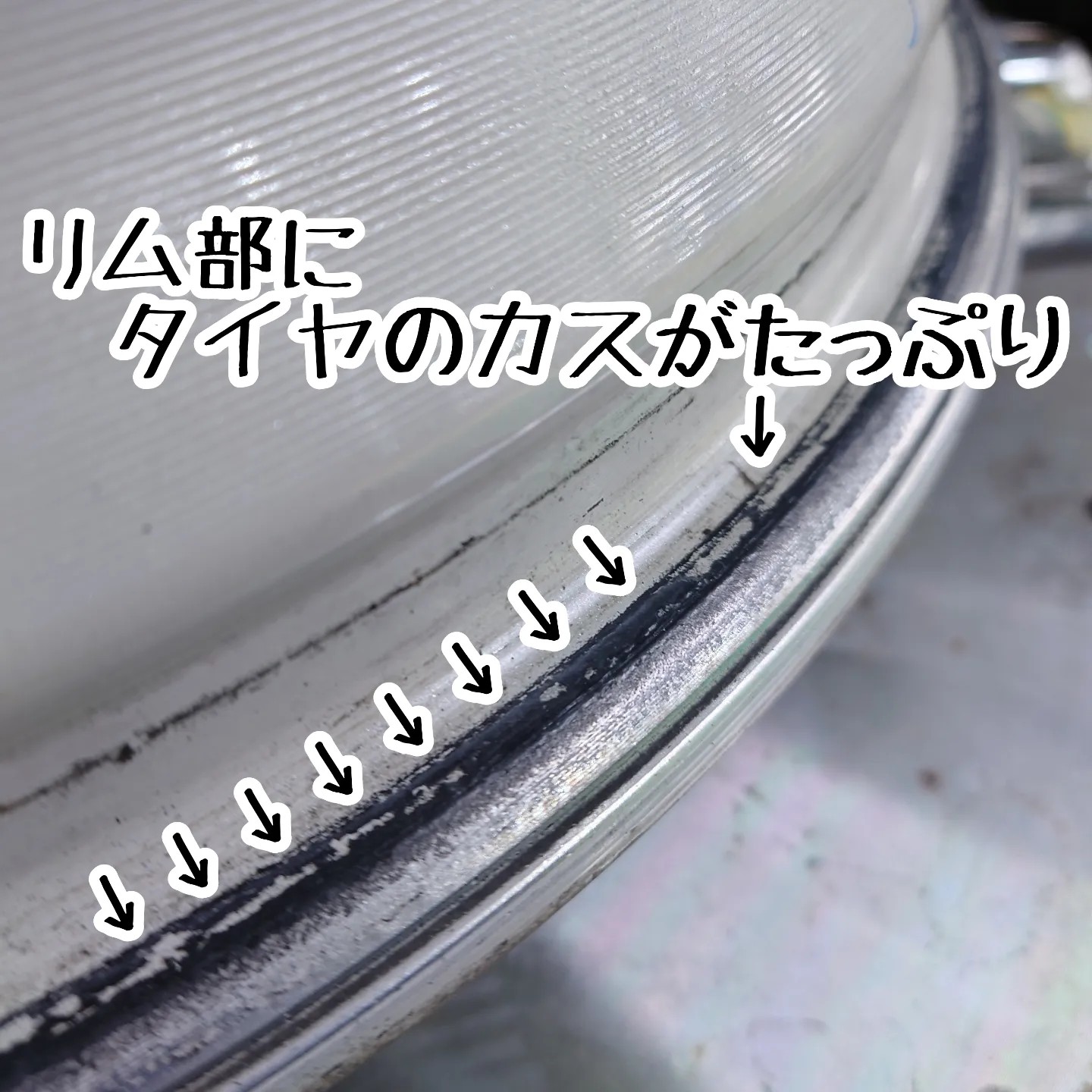 新しいタイヤを組込前には、リムのタイヤカスをしっかり除去致します。