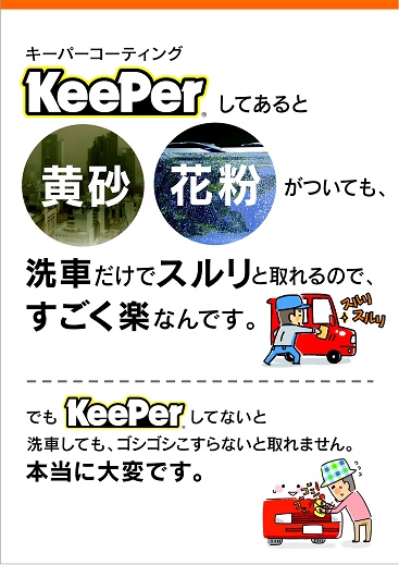 keeperコーティング、花粉など黄砂が付いても
