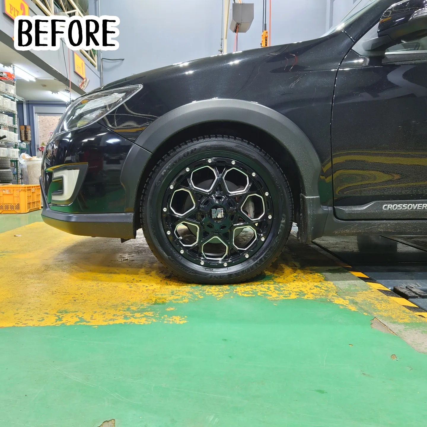 の足回り交換作業、リフトアップです!