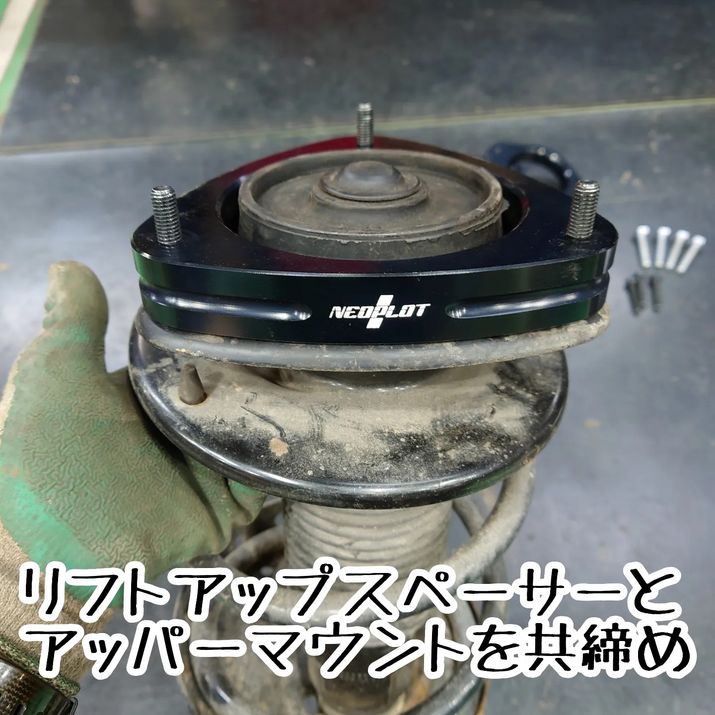 アッパーマウントのボルトを長い物に交換し