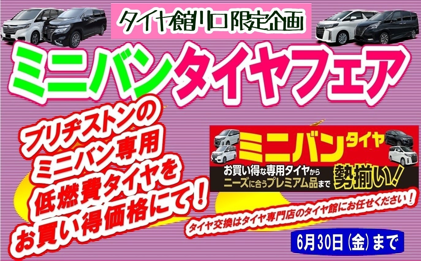 タイヤ館川口店では、お買い得のミニバン専用タイヤからお客様のニーズに合わせた