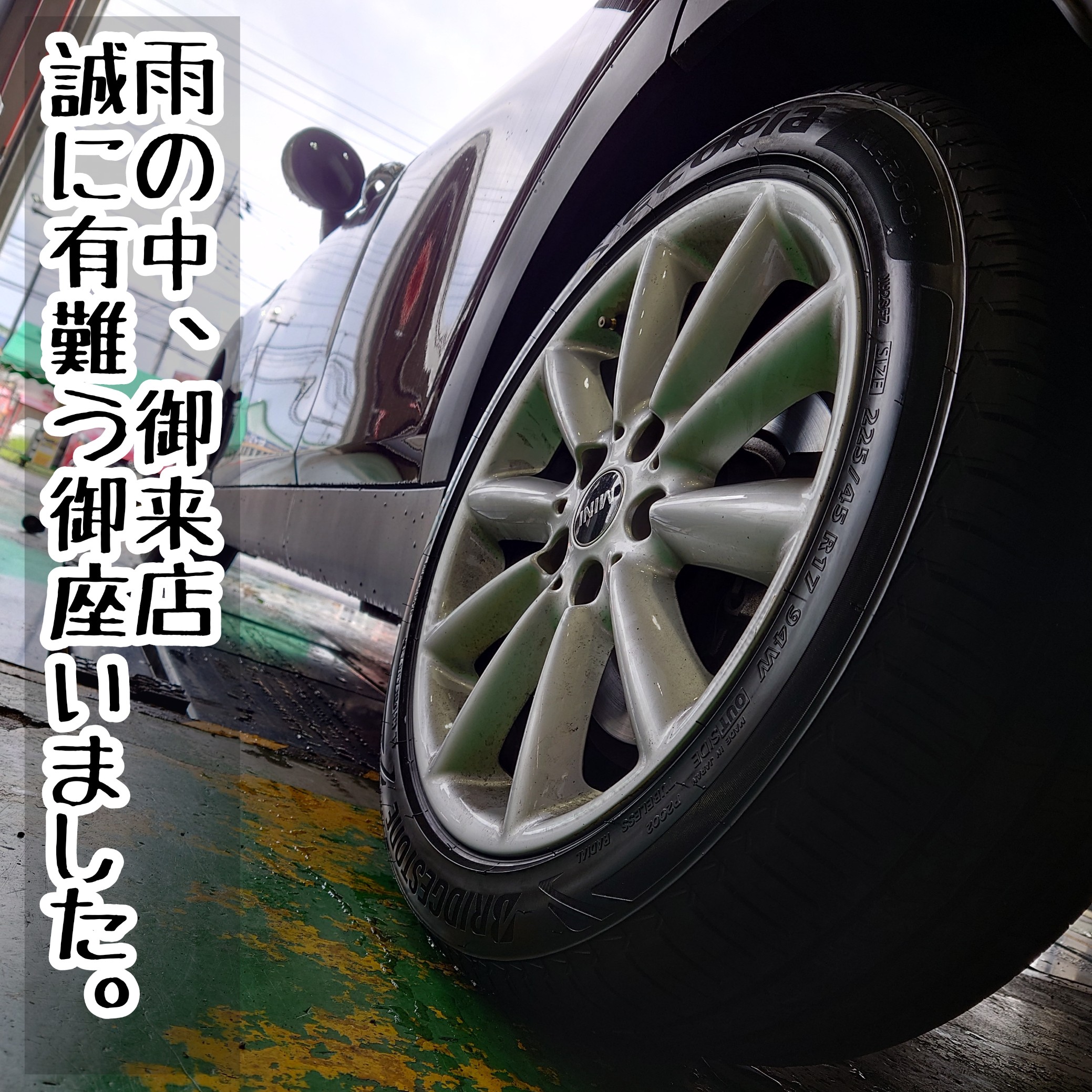 土砂降りの中、タイヤお買い上げ誠に有難う御座います