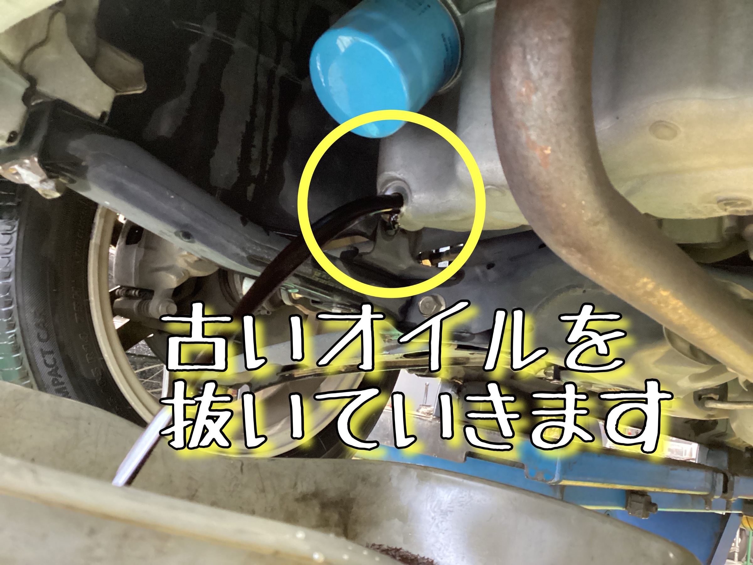 リフトアップをして早速古いオイルを抜いていきます。