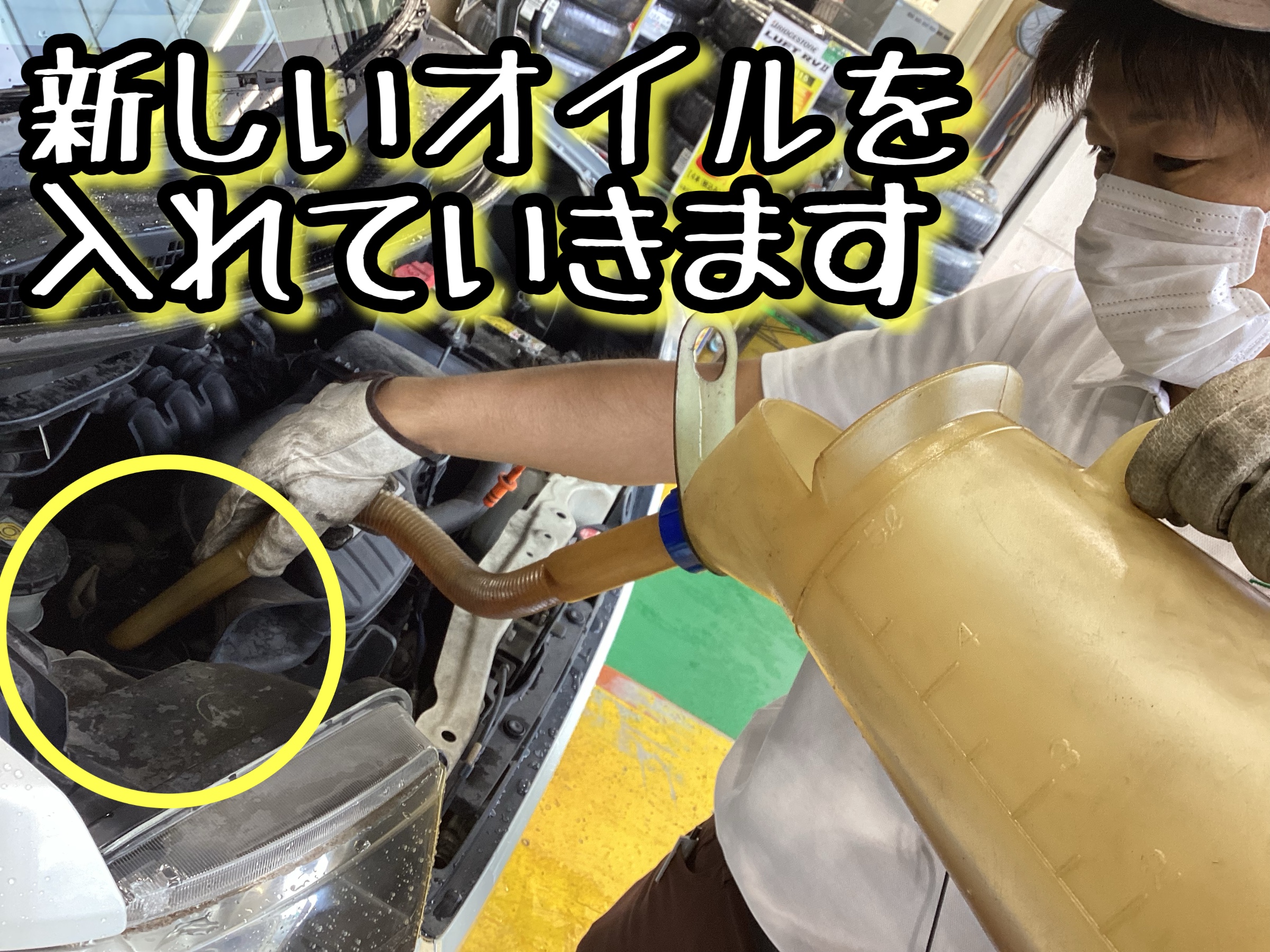 古いオイルを抜き終わったら新しいオイルを入れていきます!
