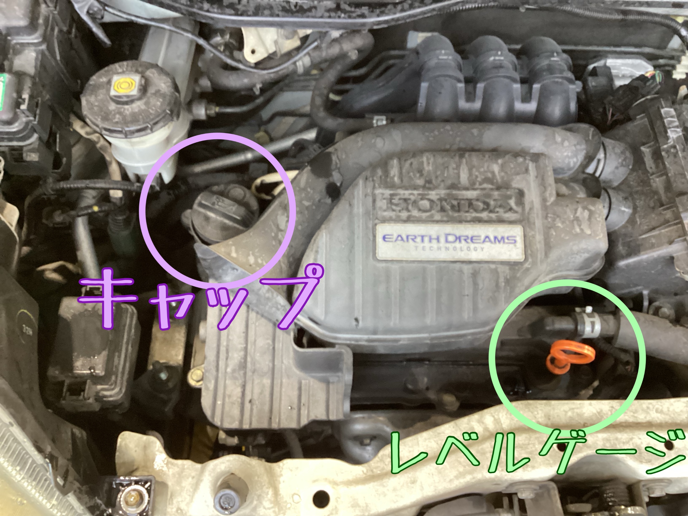オイルゲージとフィラーキャップが閉まっているかチェックを行い
