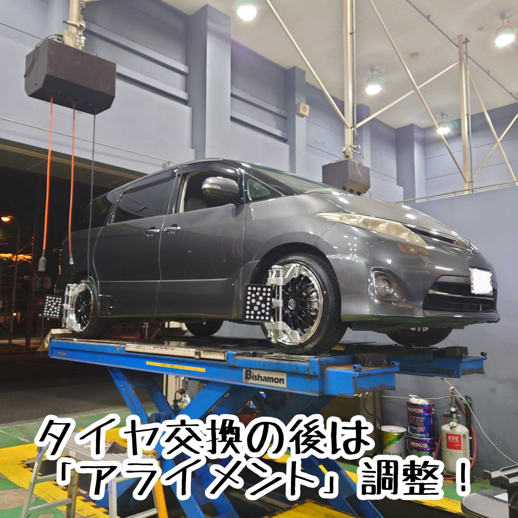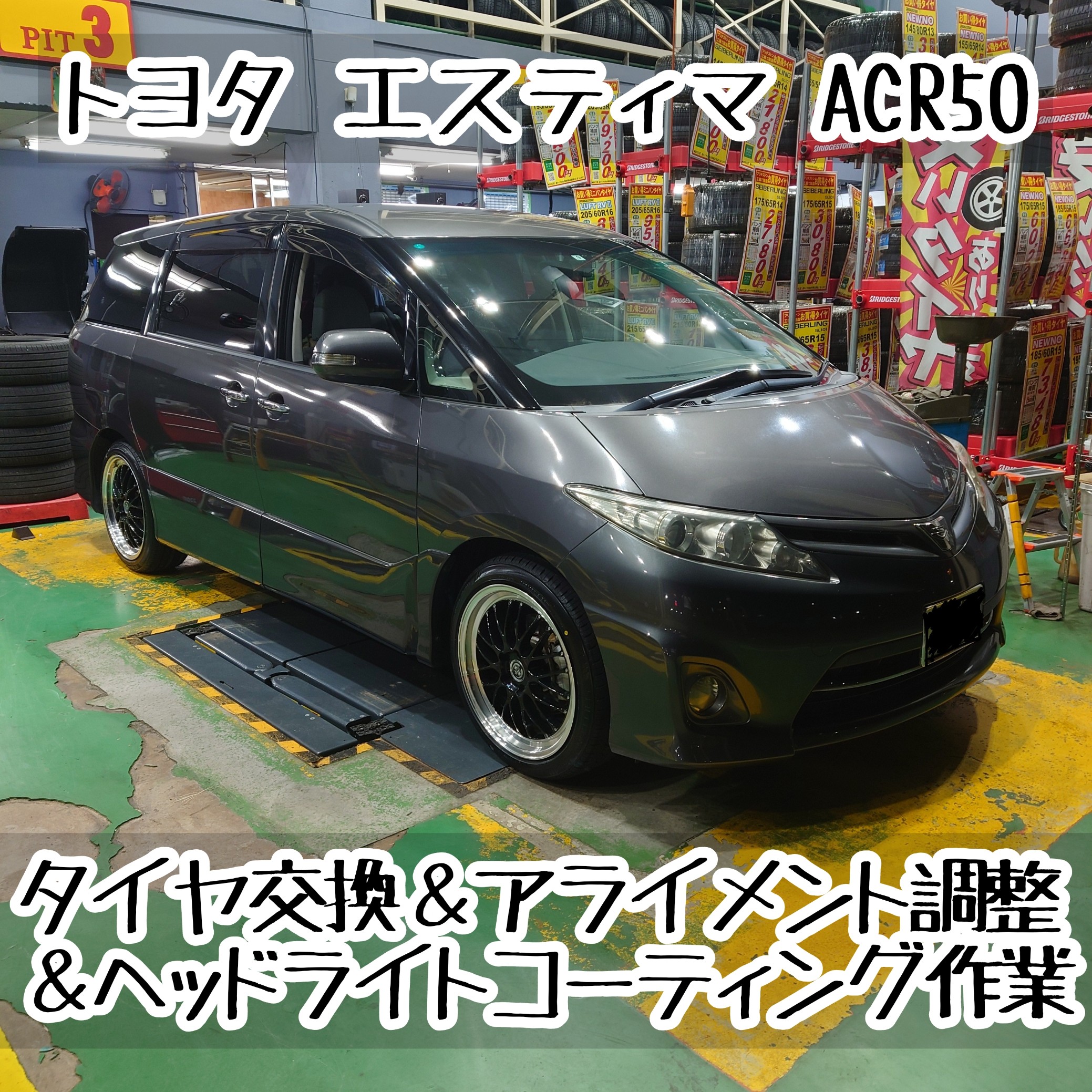 トヨタ エスティマ タイヤ交換&アライメント&ヘッドライトコーティング作業!