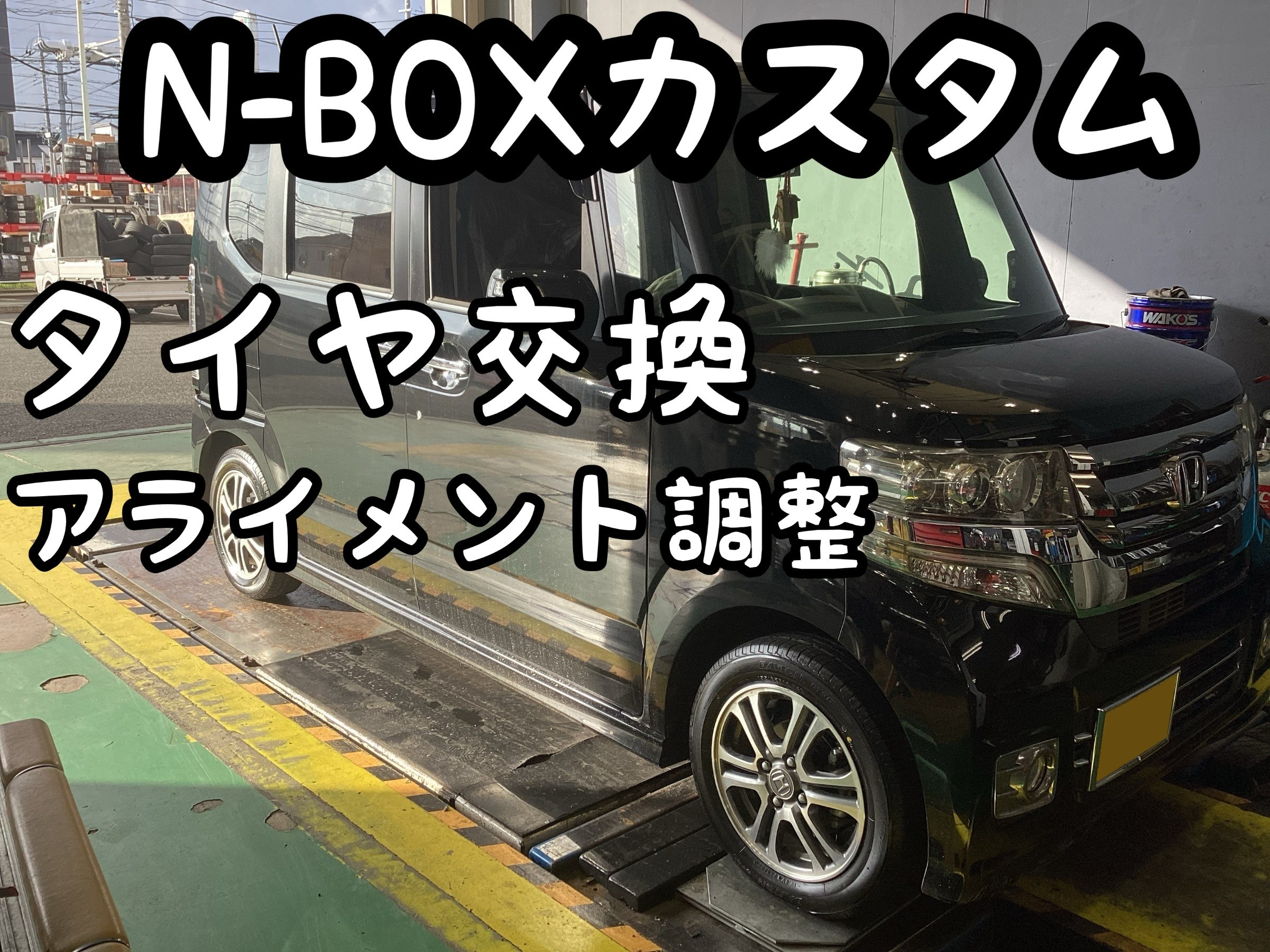 N-BOXカスタムのタイヤ交換 アライメント調整です!