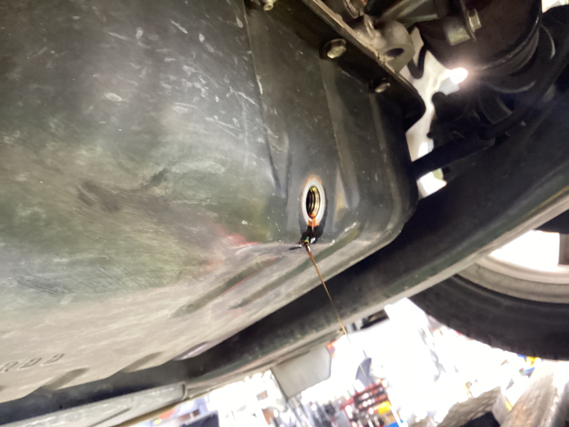 リフトアップをして早速古いオイルを抜いていきます。