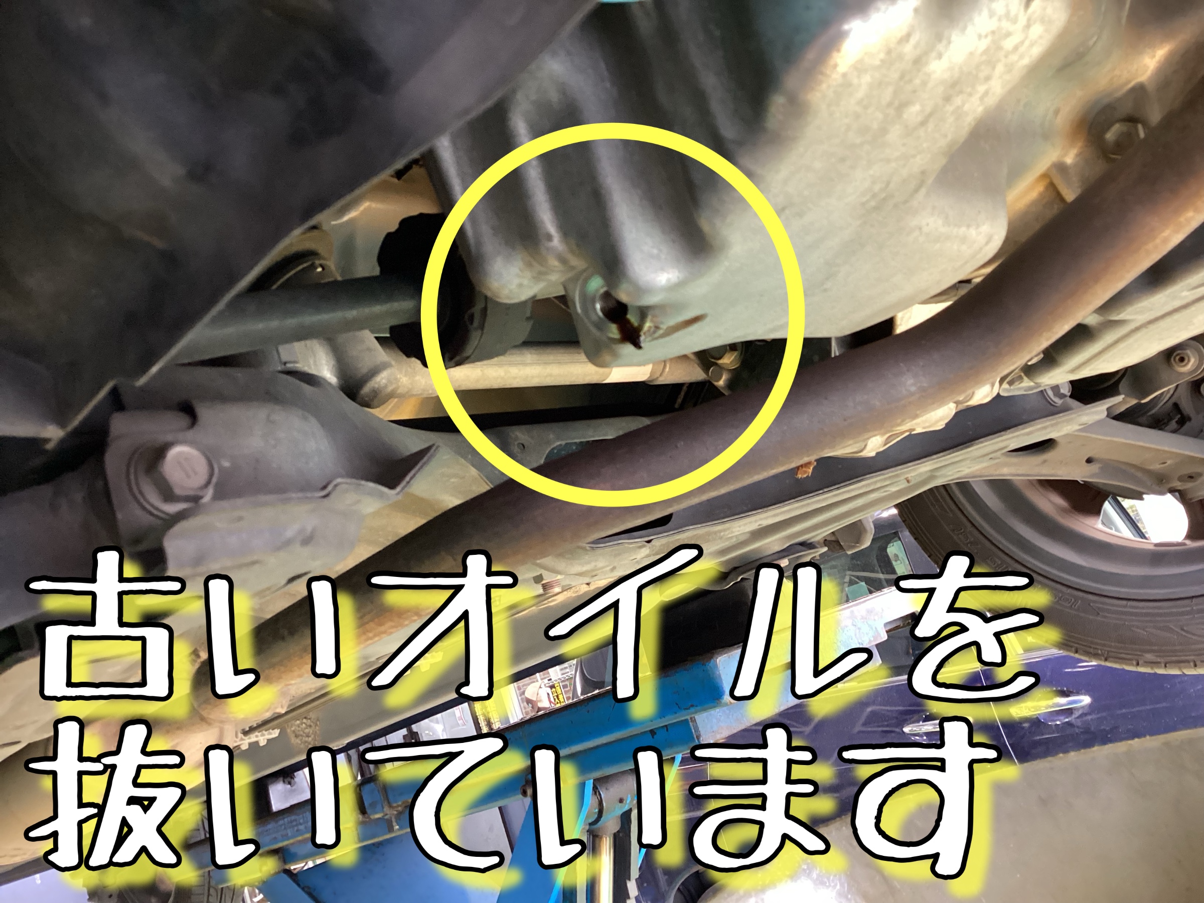 リフトアップをして早速古いオイルを抜いていきます。