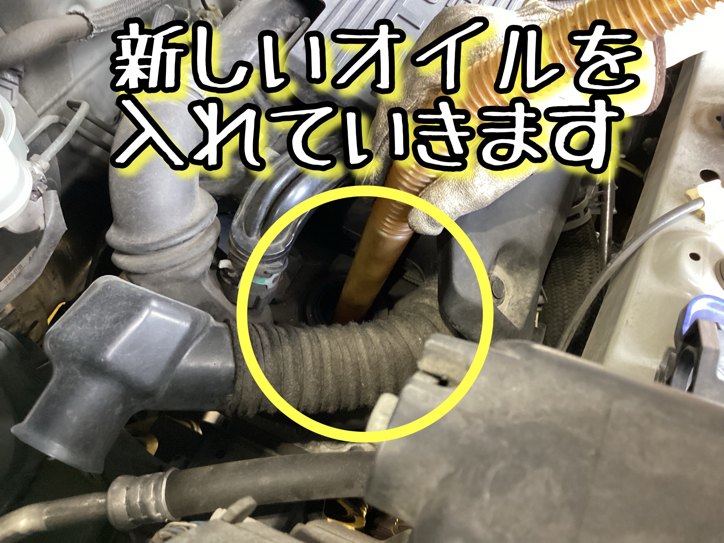 古いオイルを抜き終わったら新しいオイルを入れていきます!