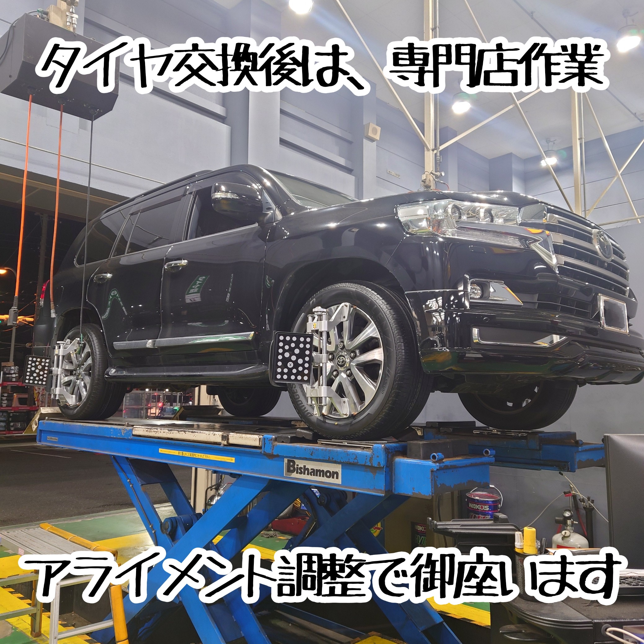 タイヤ交換の後は、「アライメント調整」