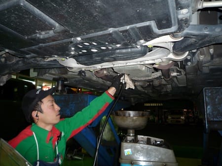 車の下側から専用の工具を使って交換も出来るんです!
