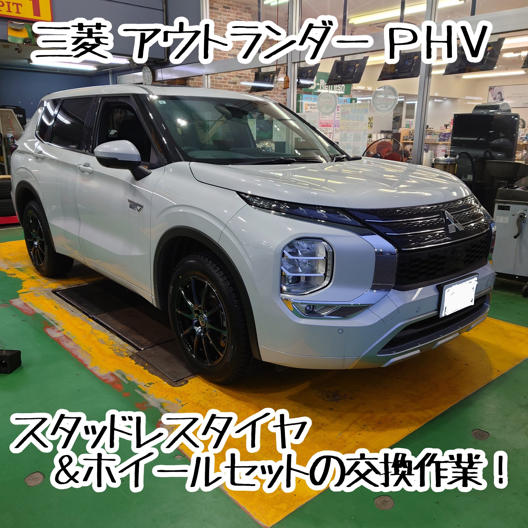 ミツビシ アウトランダーPHV スタッドレスタイヤ&ホイールセット取付作業!