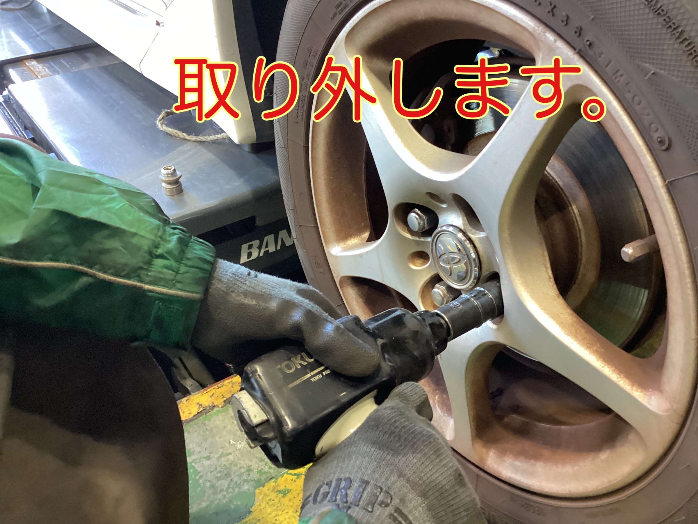 さっそく現在装着されているタイヤをとり外し、交換します。