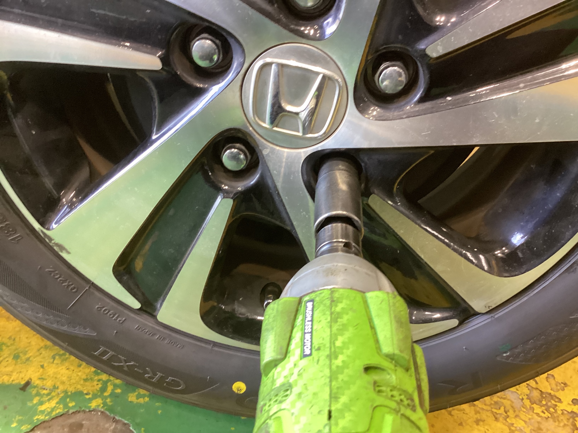 センターフィットを行い、ホイールナットを規定のトルクになるように、