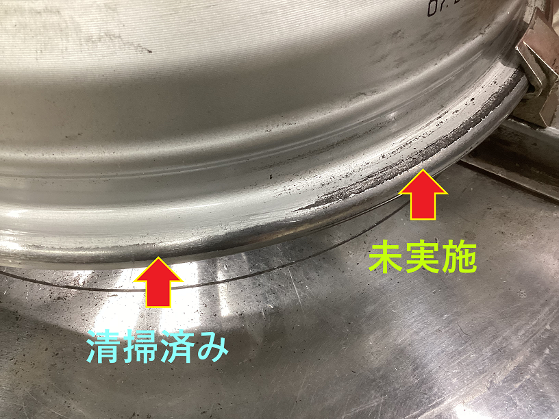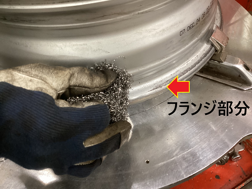 タイヤがフィットするフランジ部分の清掃を行います!!