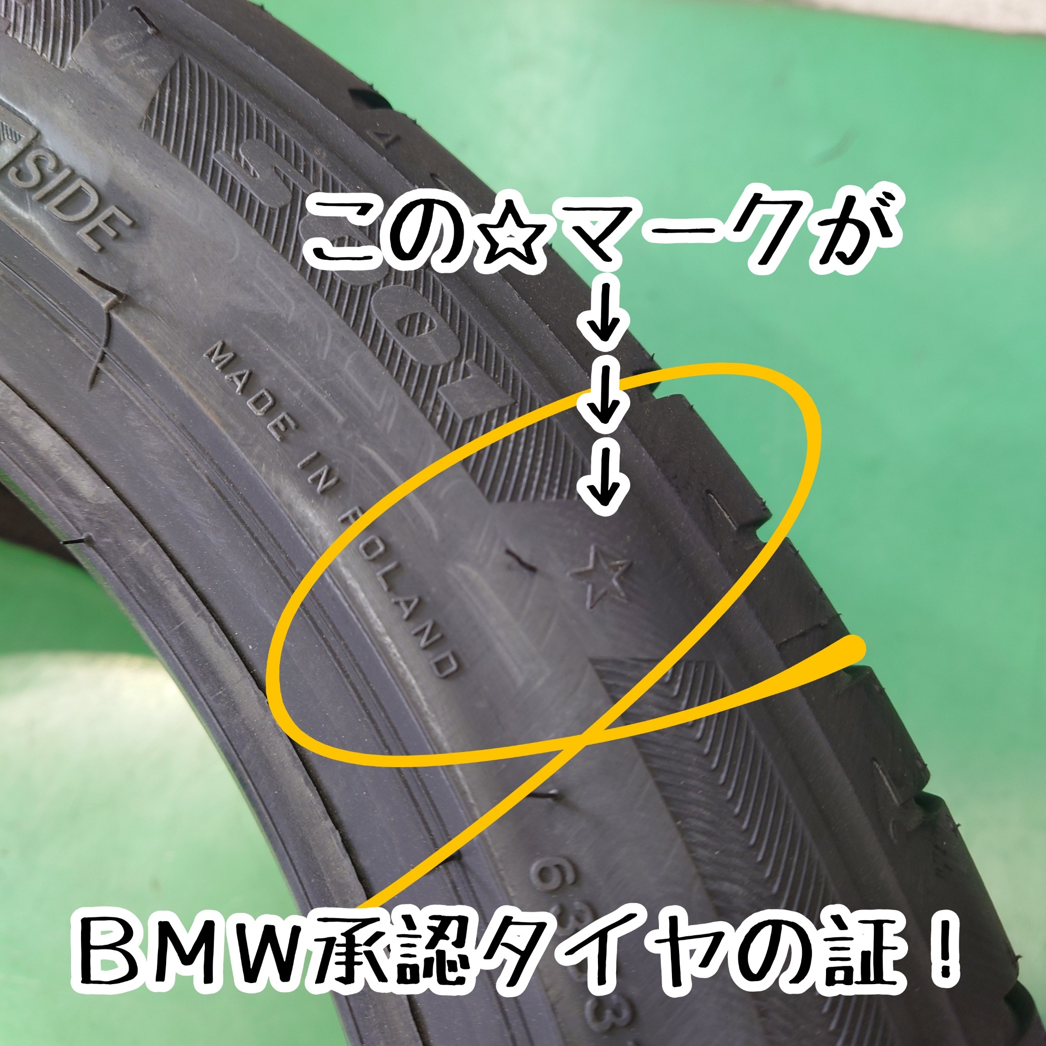 ☆のマークが、BMWが承認したタイヤの証です。